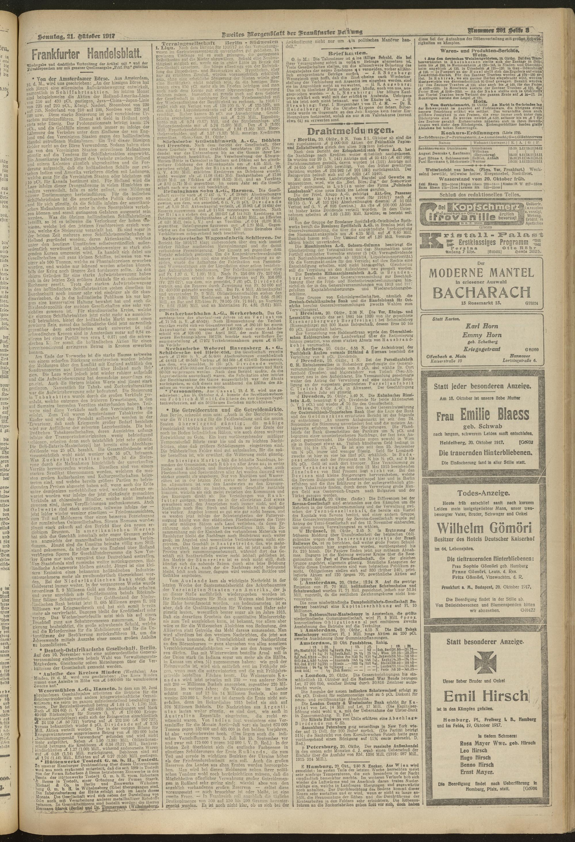 21.10.1917 = Nr. 291. Zweites Morgenblatt
