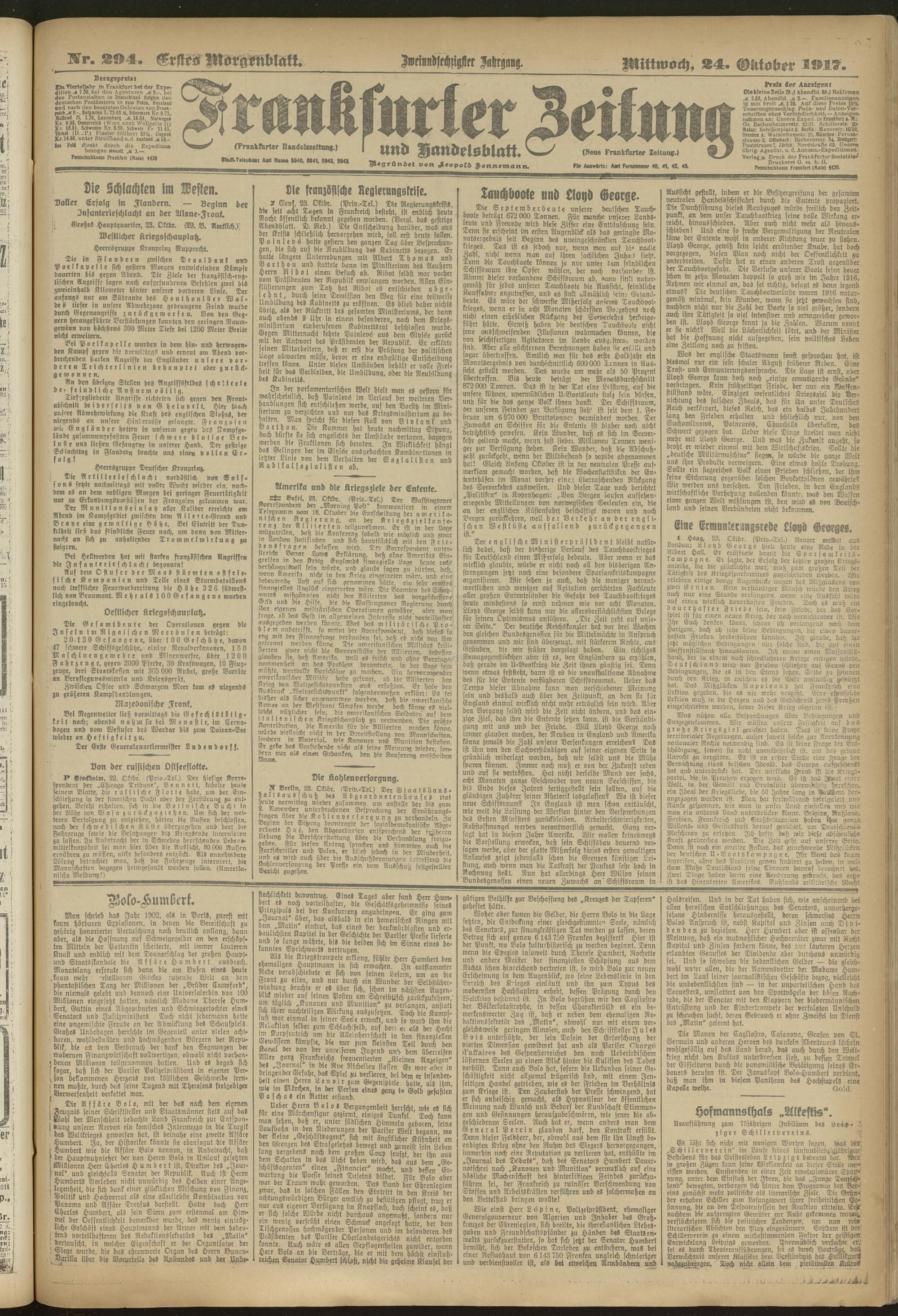 24.10.1917 = Nr. 294. Erstes Morgenblatt