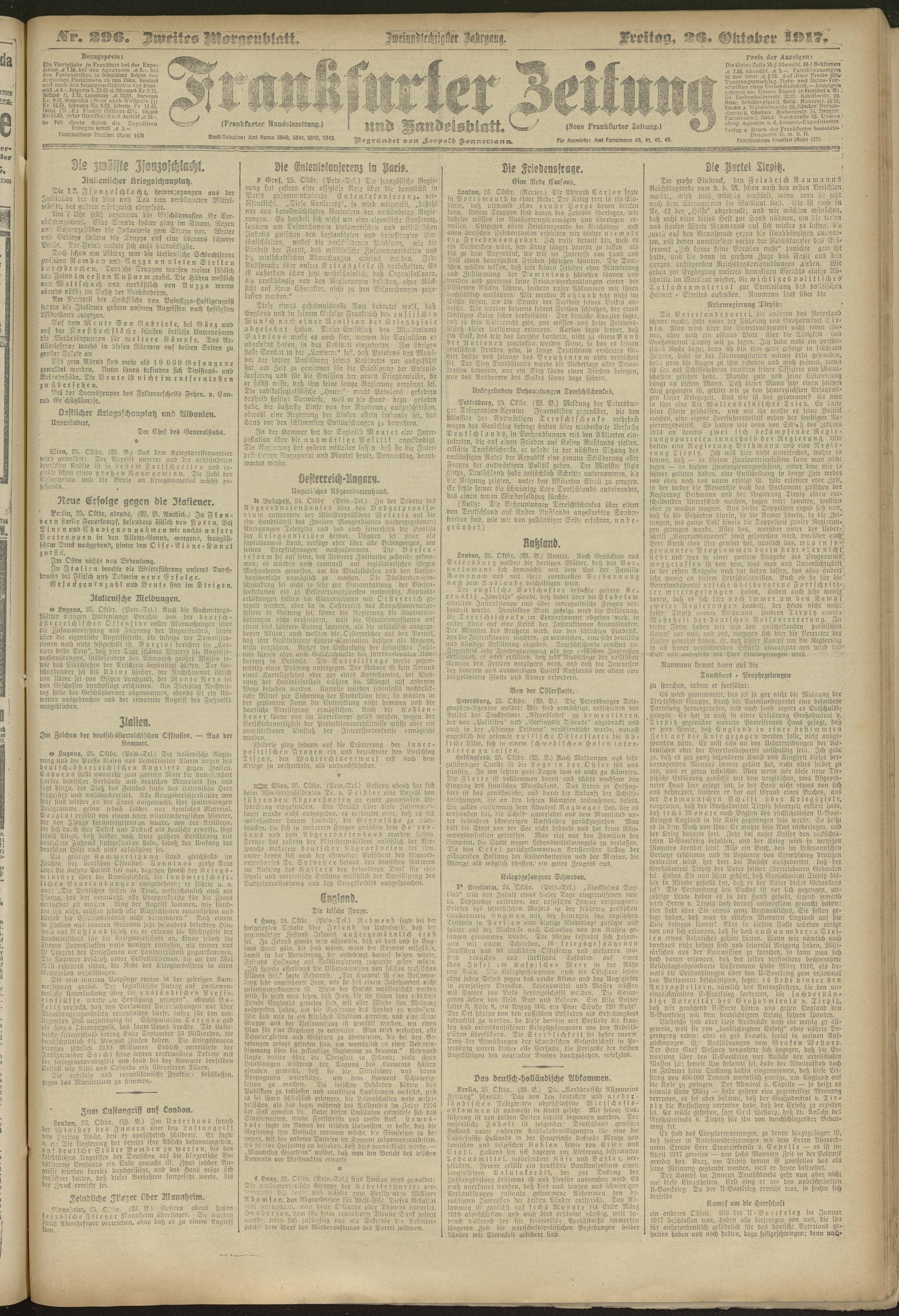 26.10.1917 = Nr. 296. Zweites Morgenblatt