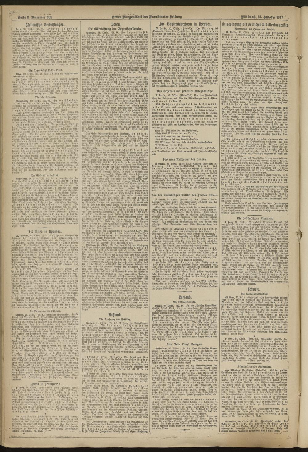 31.10.1917 = Nr. 301. Erstes Morgenblatt