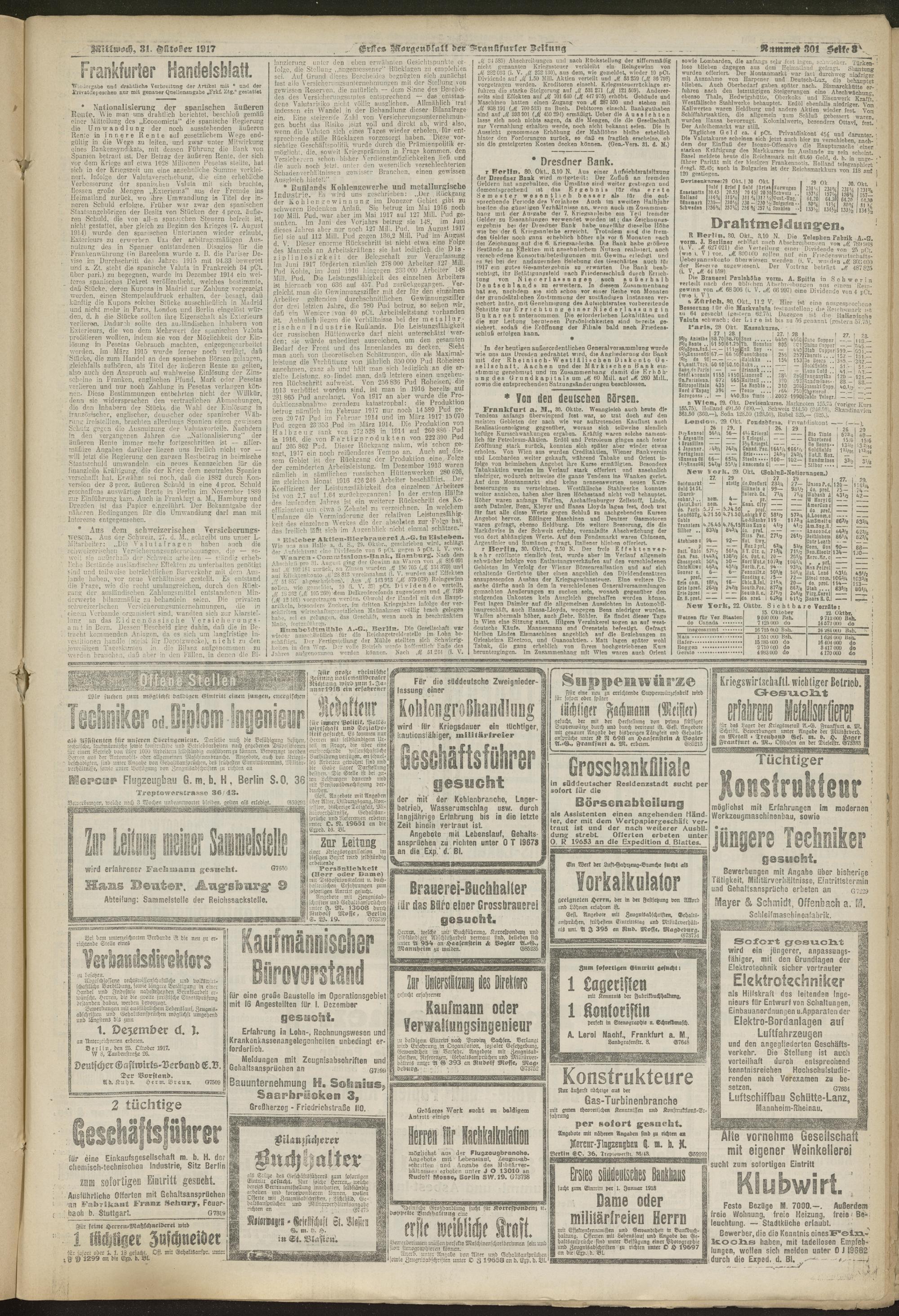 31.10.1917 = Nr. 301. Erstes Morgenblatt