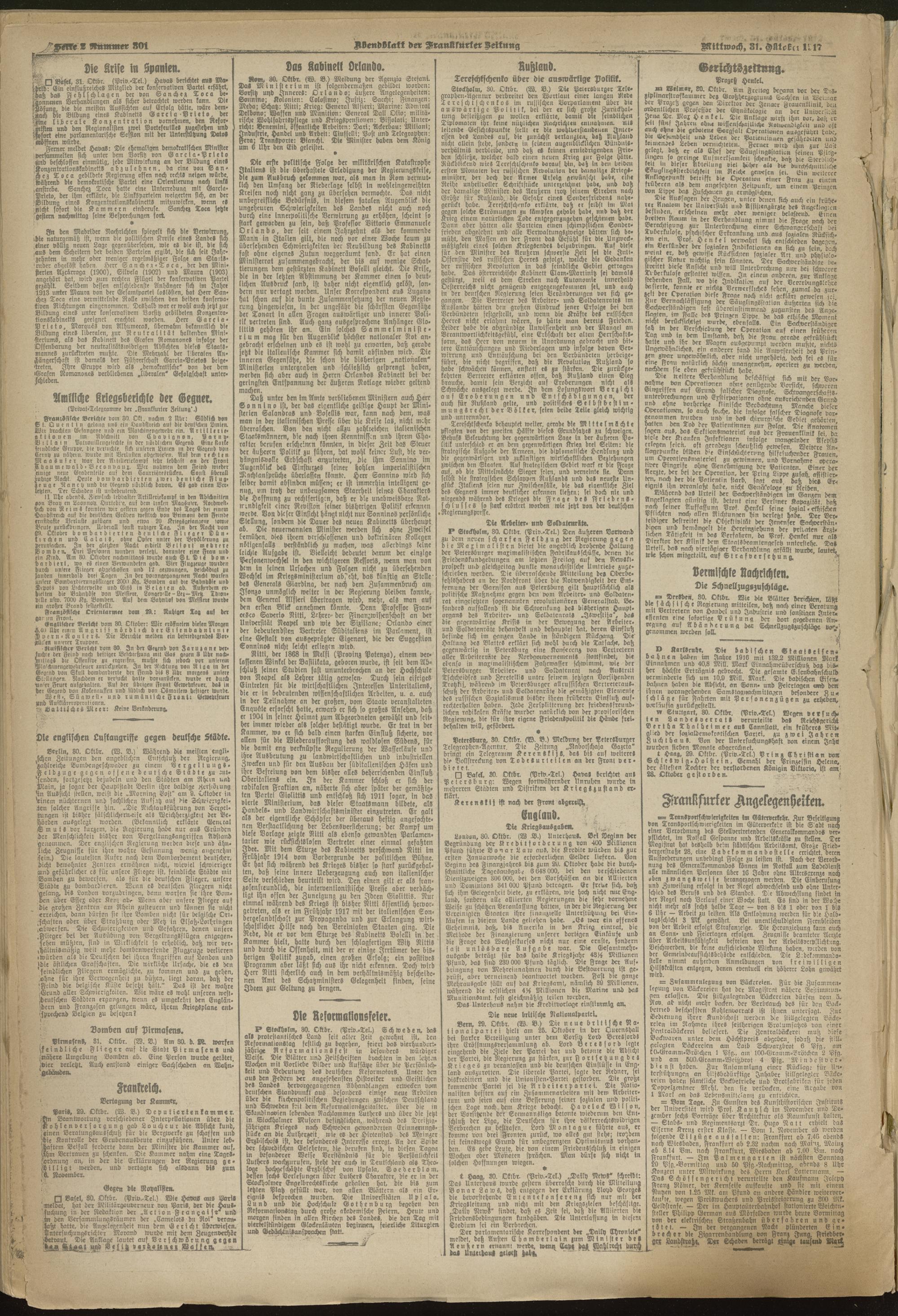 31.10.1917 = Nr. 301. Abendblatt