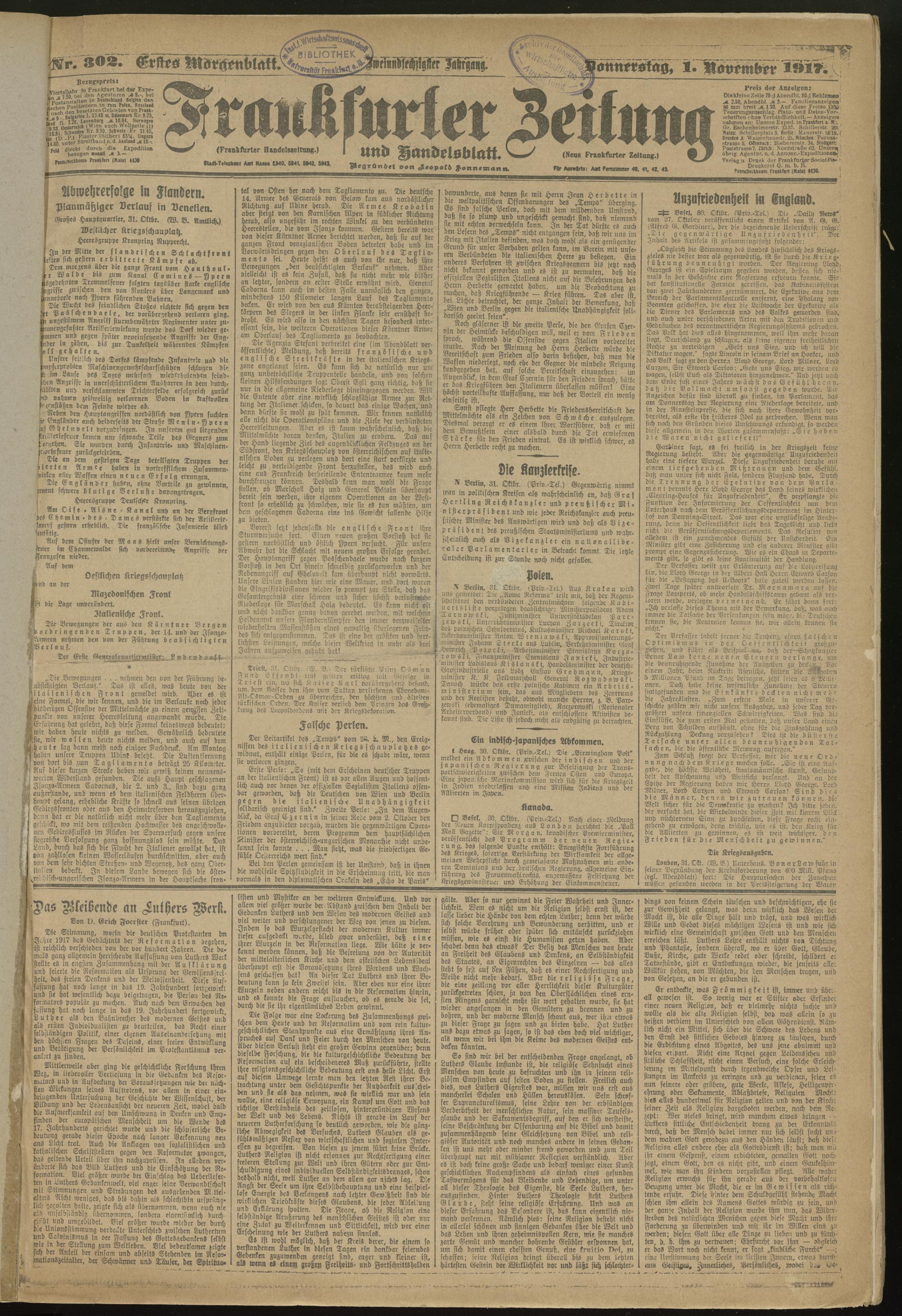 01.11.1917 = Nr. 302. Erstes Morgenblatt