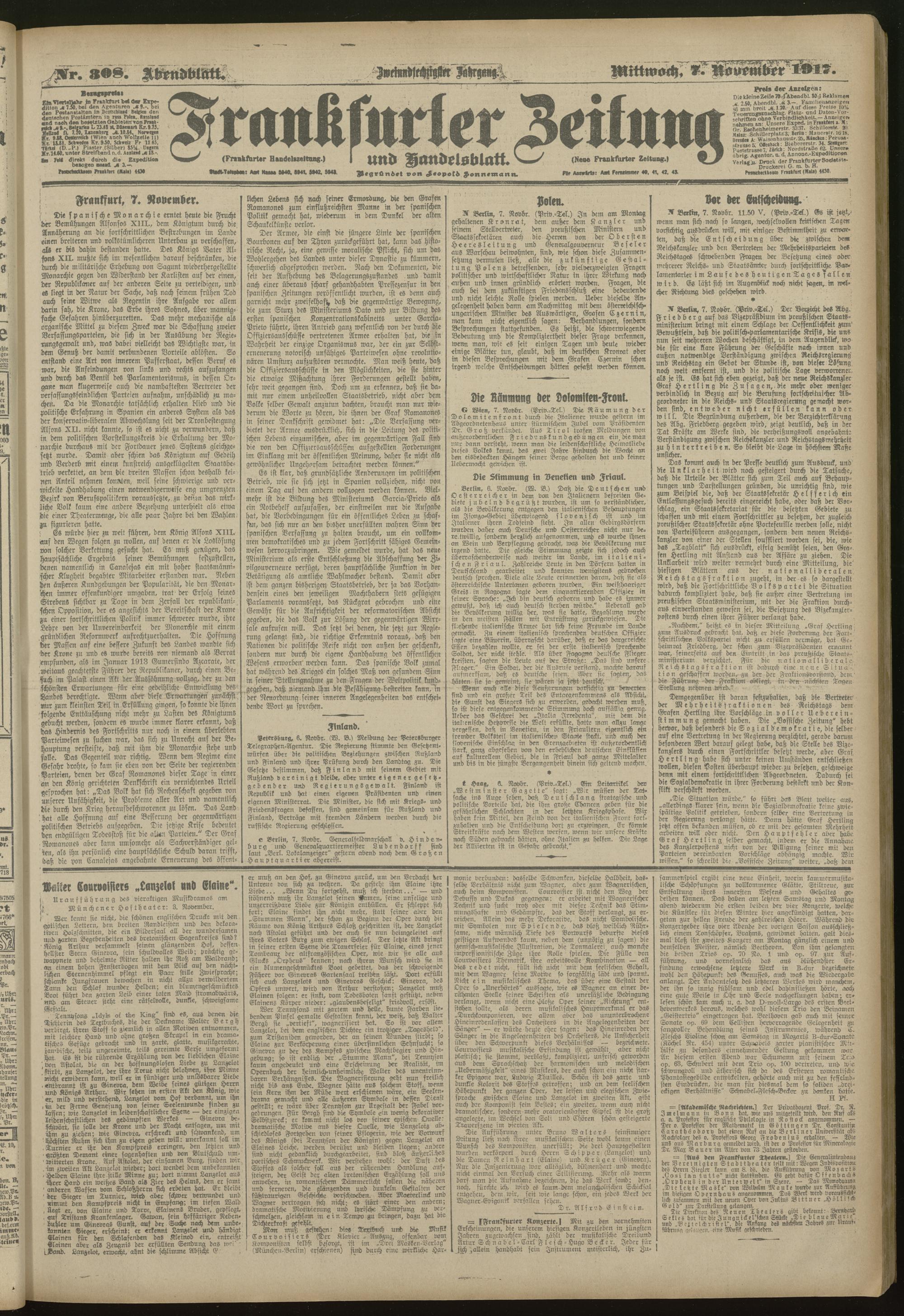 07.11.1917 = Nr. 308. Abendblatt