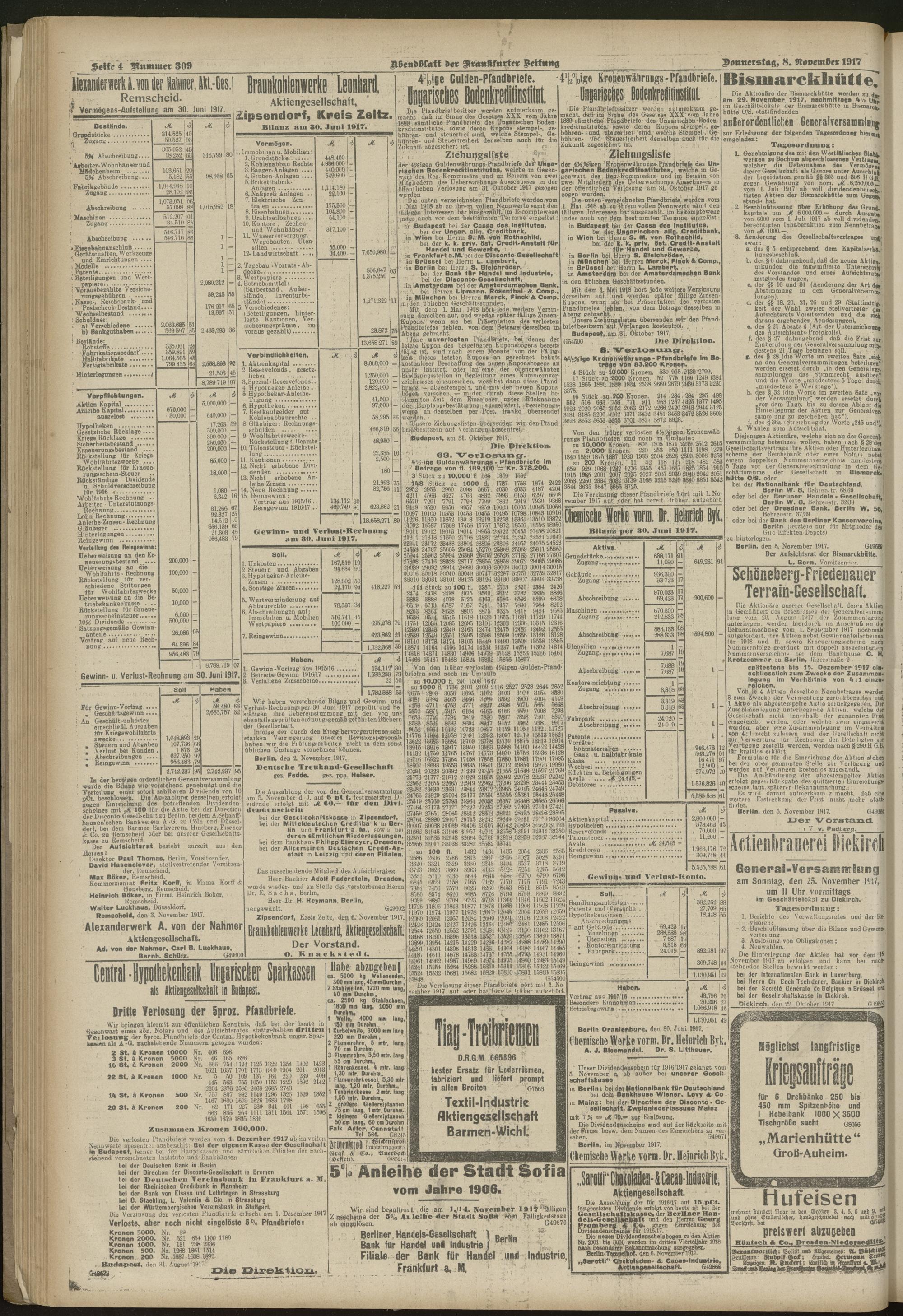 08.11.1917 = Nr. 309. Abendblatt