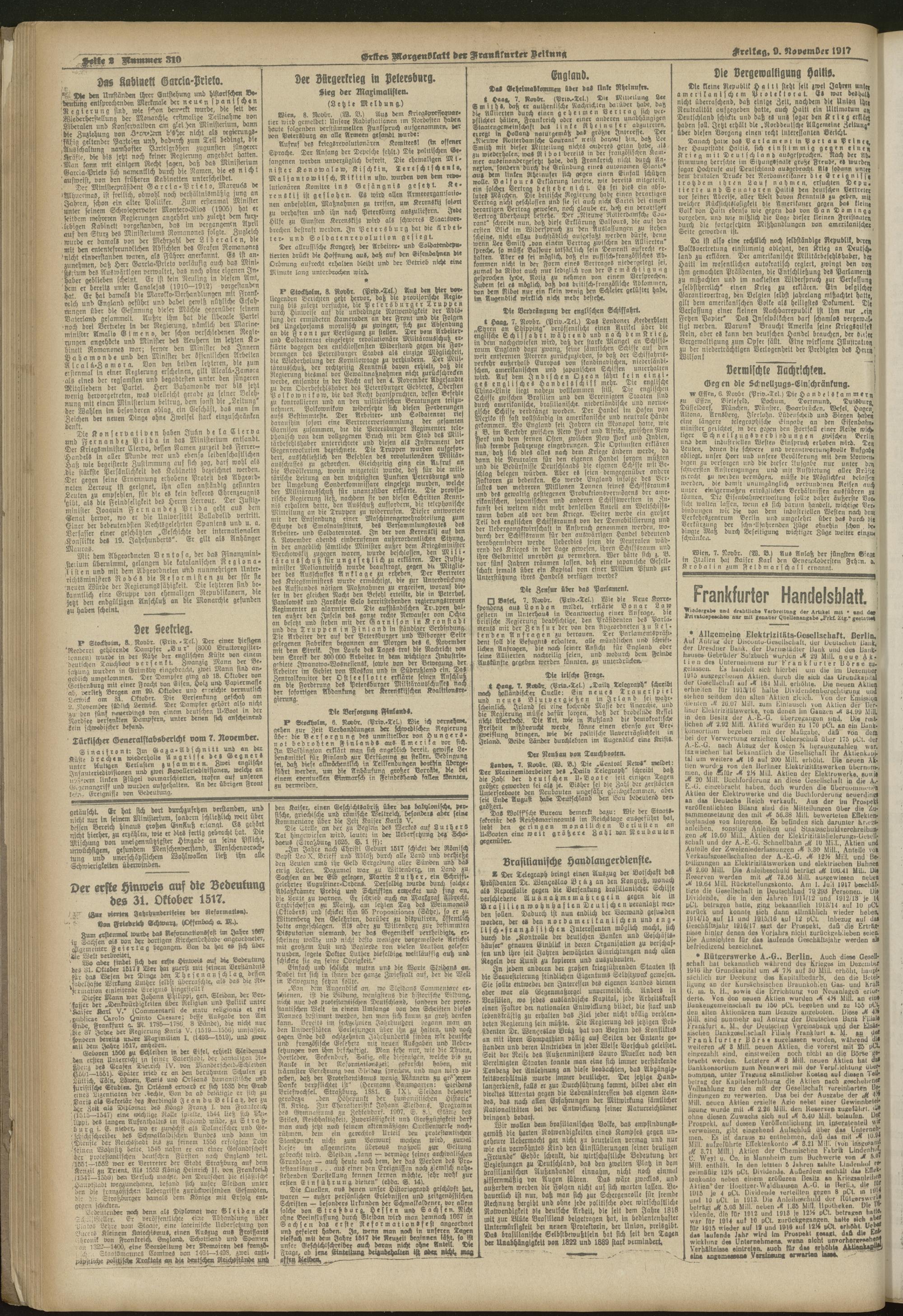 09.11.1917 = Nr. 310. Erstes Morgenblatt