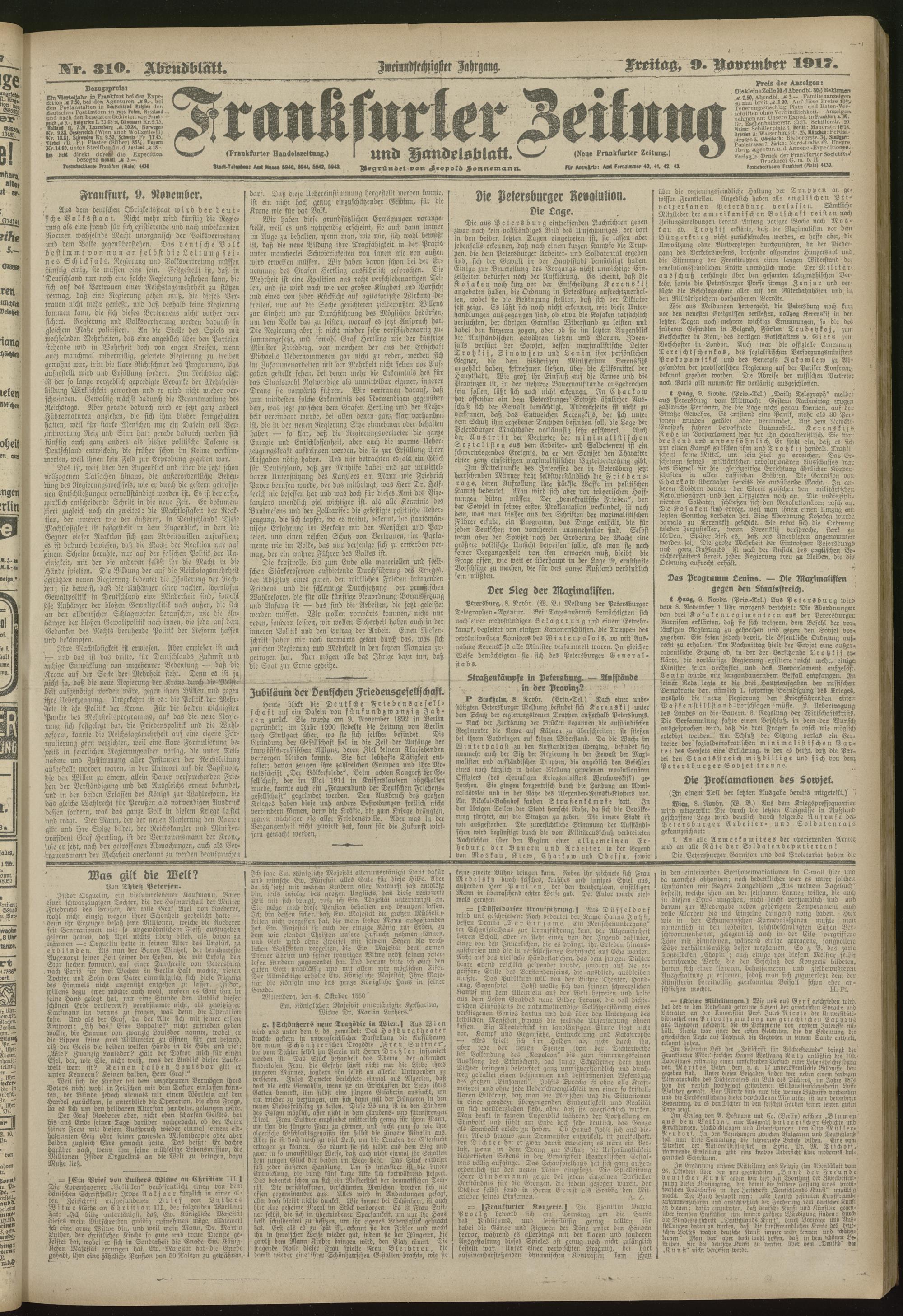 09.11.1917 = Nr. 310. Abendblatt
