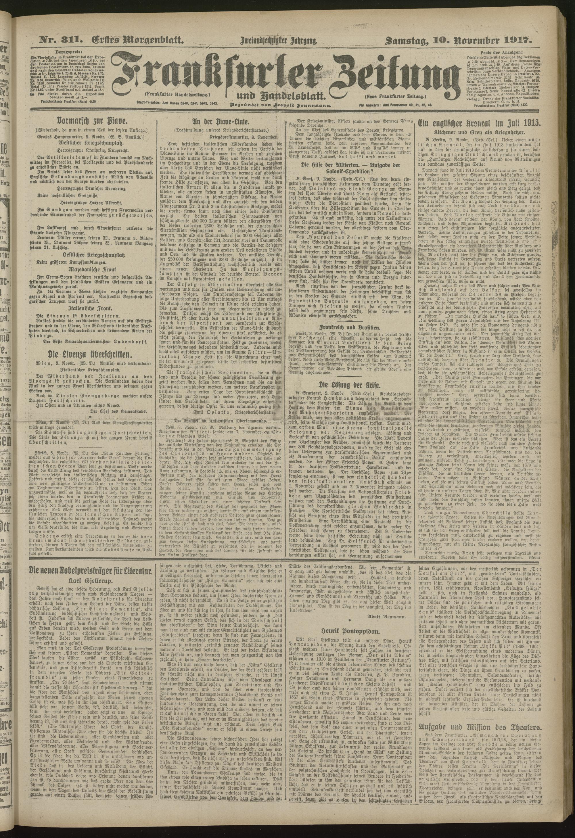 10.11.1917 = Nr. 311. Erstes Morgenblatt