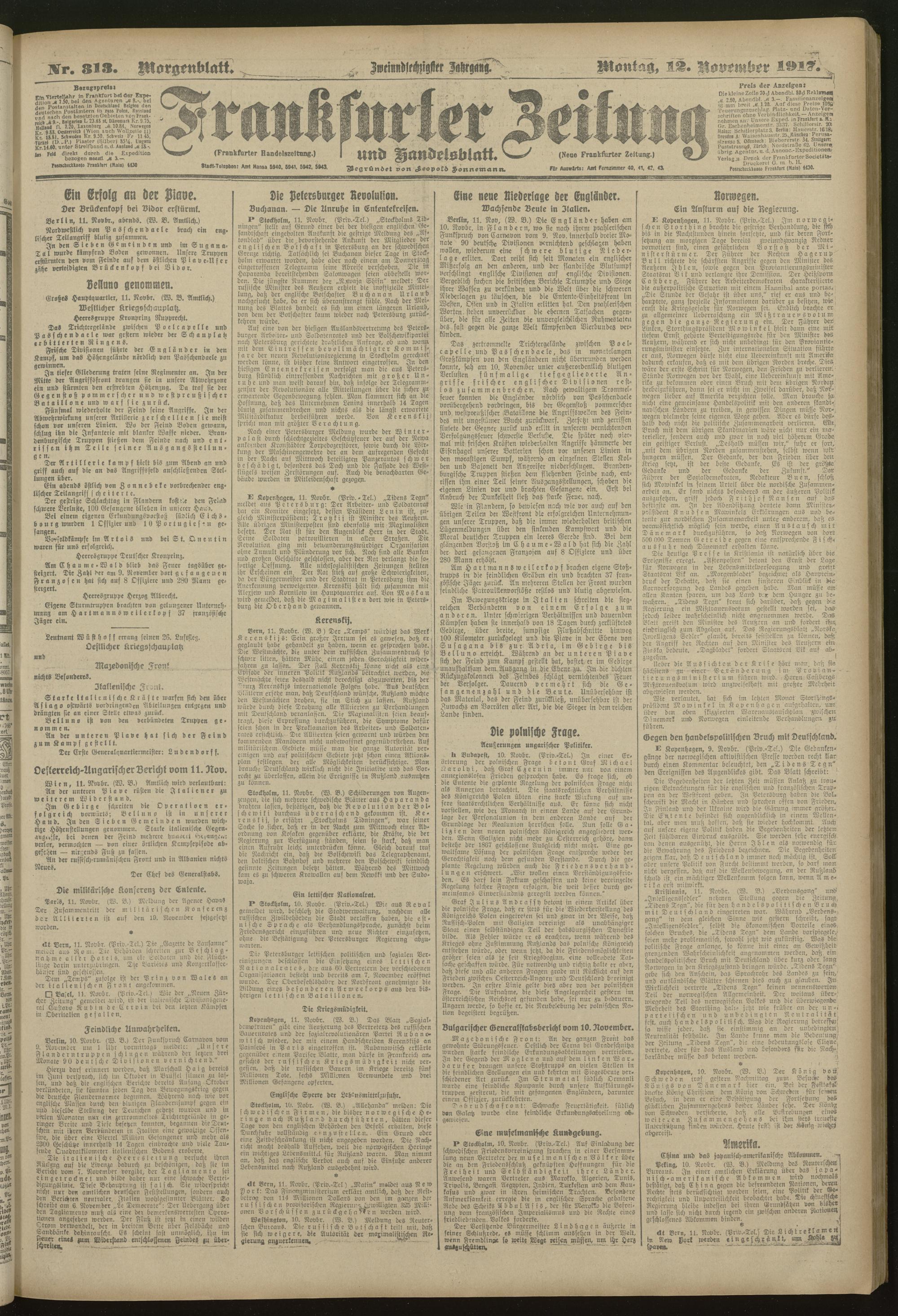 12.11.1917 = Nr. 313. Morgenblatt