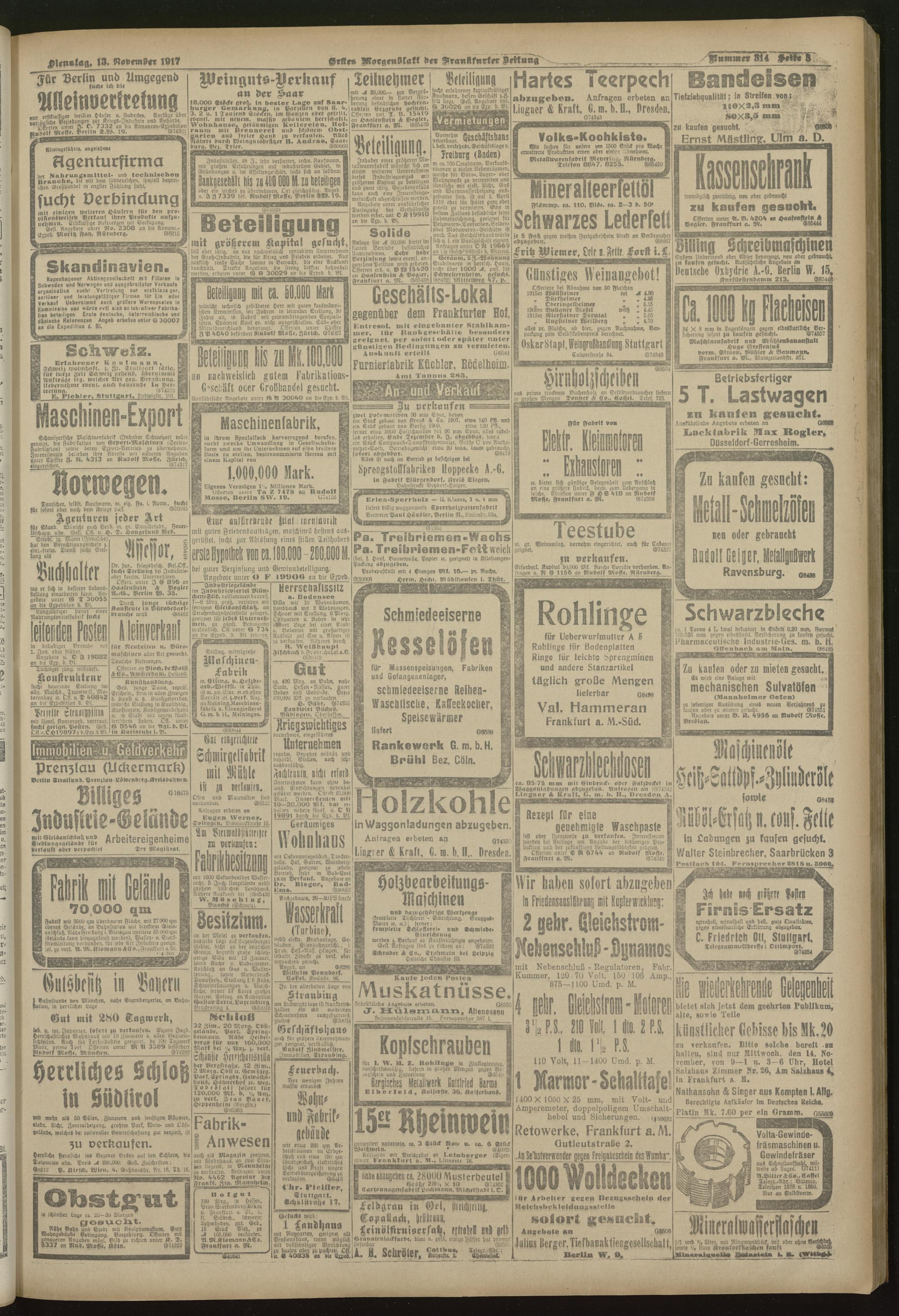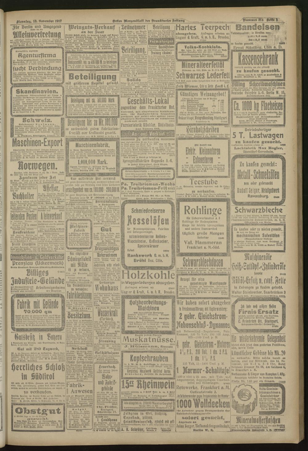 13.11.1917 = Nr. 314. Erstes Morgenblatt