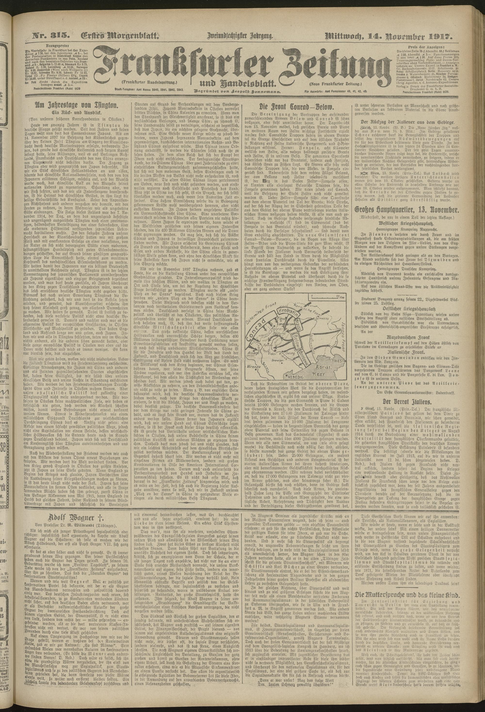 14.11.1917 = Nr. 315. Erstes Morgenblatt