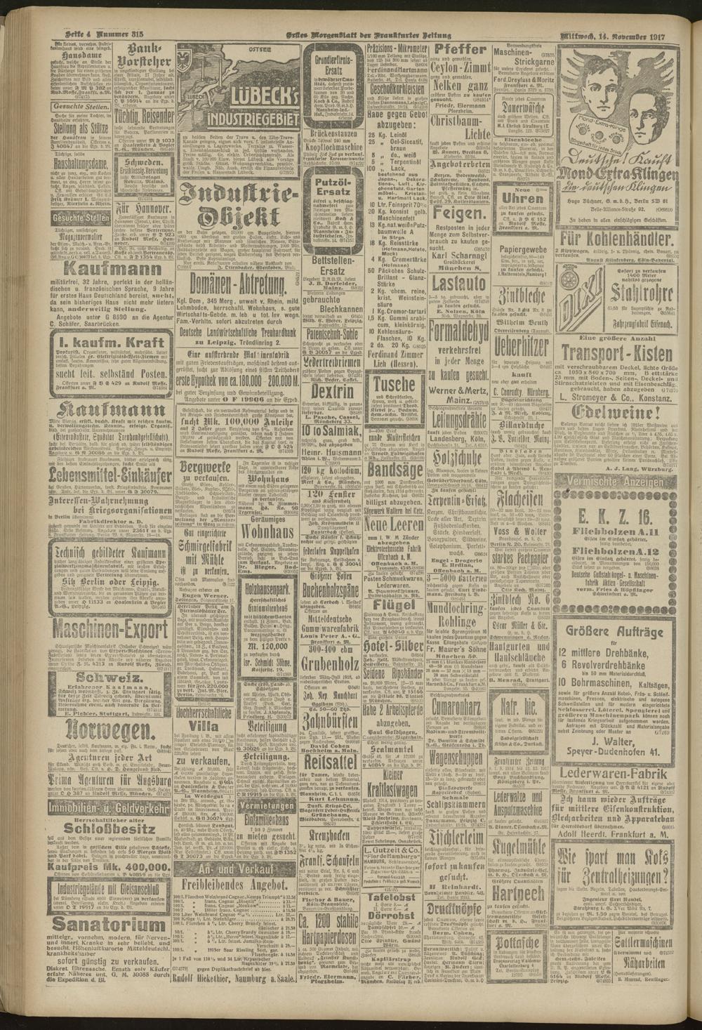 14.11.1917 = Nr. 315. Erstes Morgenblatt