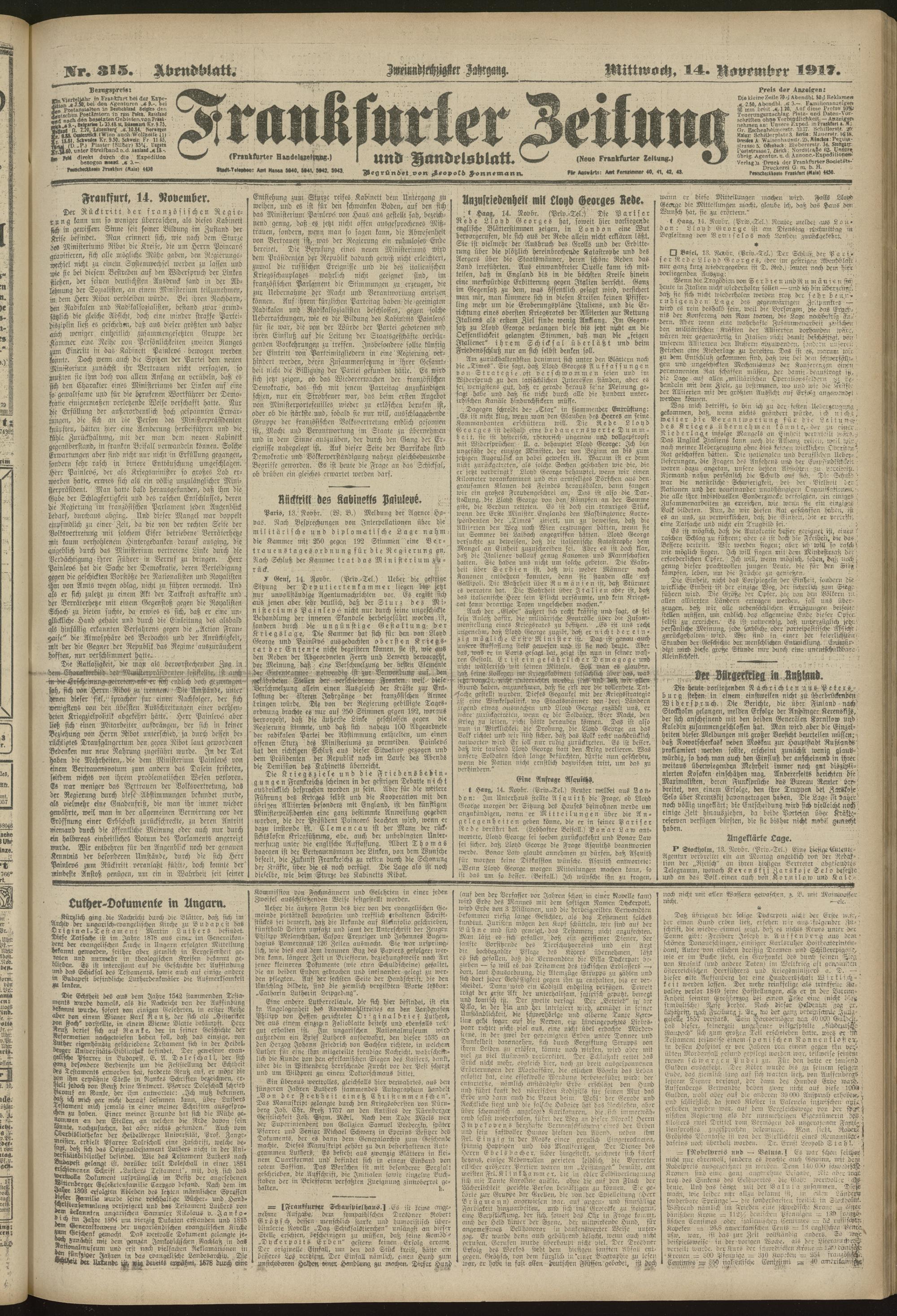 14.11.1917 = Nr. 315. Abendblatt