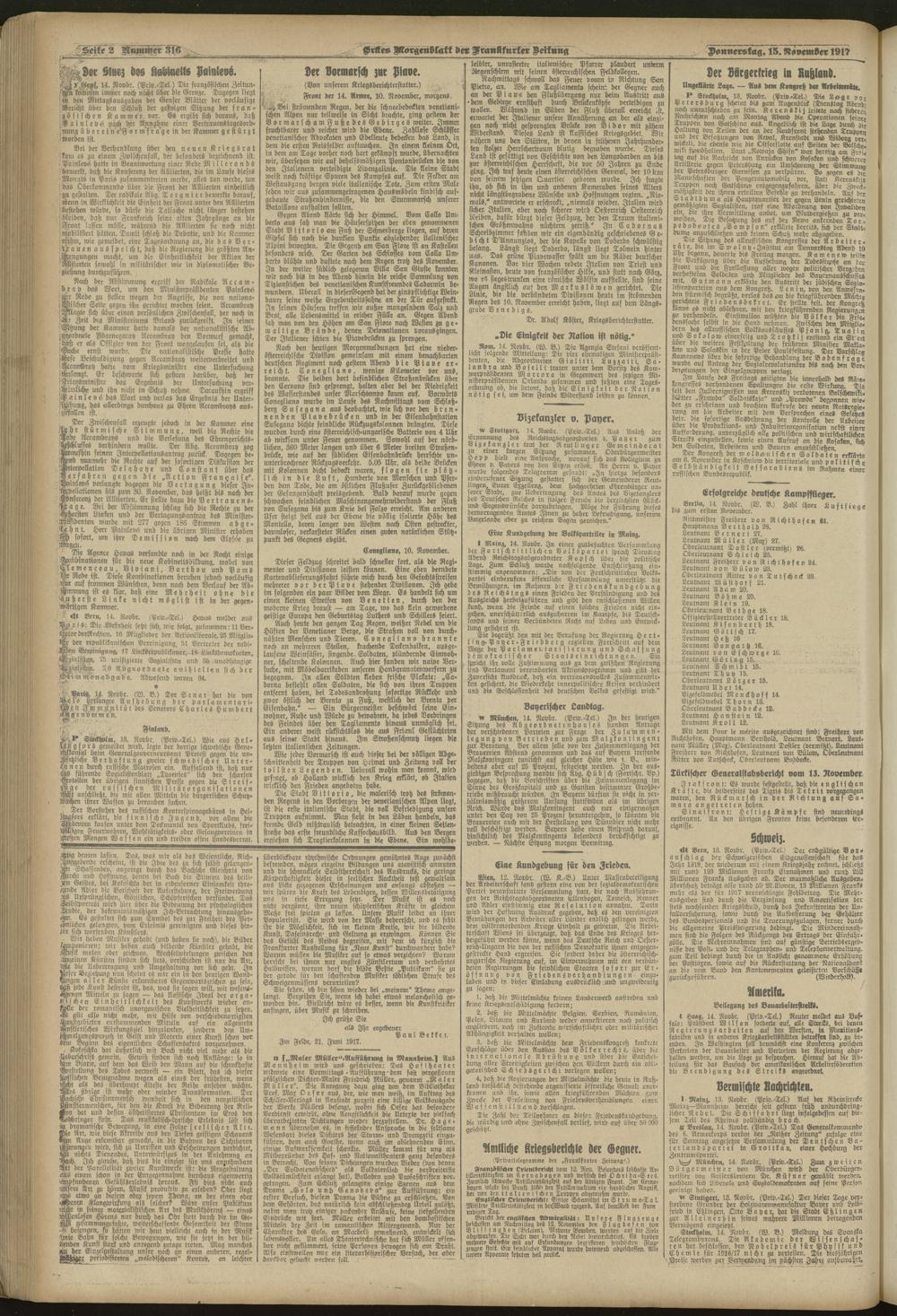 15.11.1917 = Nr. 316. Erstes Morgenblatt
