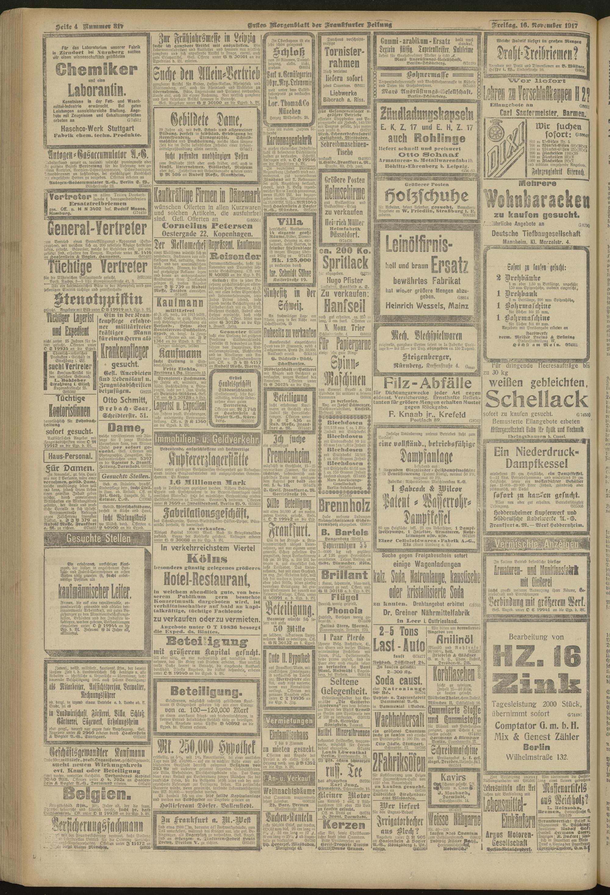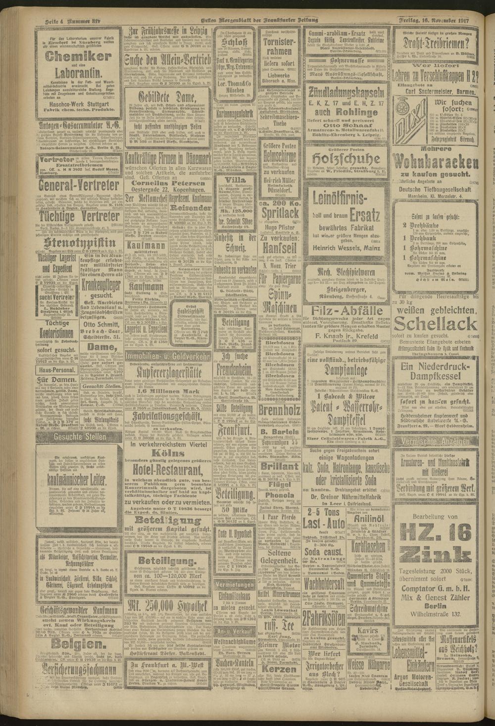 16.11.1917 = Nr. 317. Erstes Morgenblatt