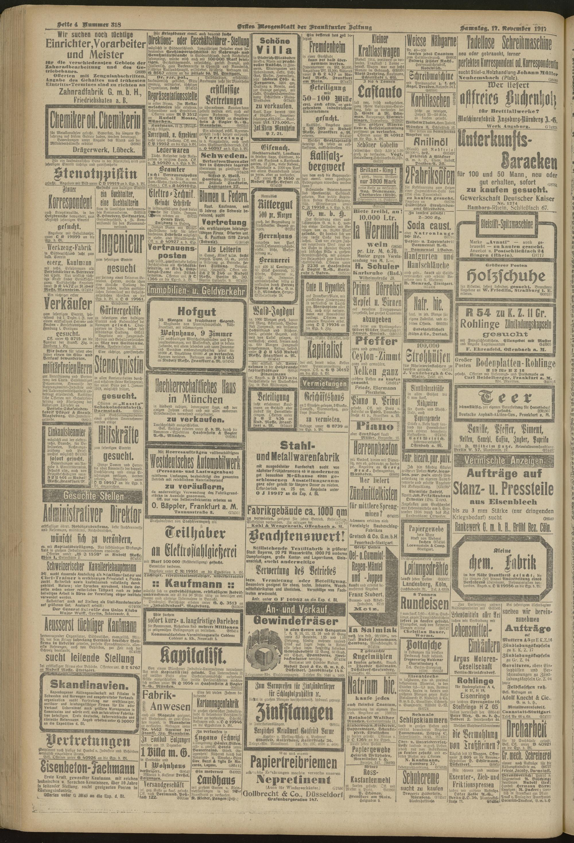 17.11.1917 = Nr. 318. Erstes Morgenblatt