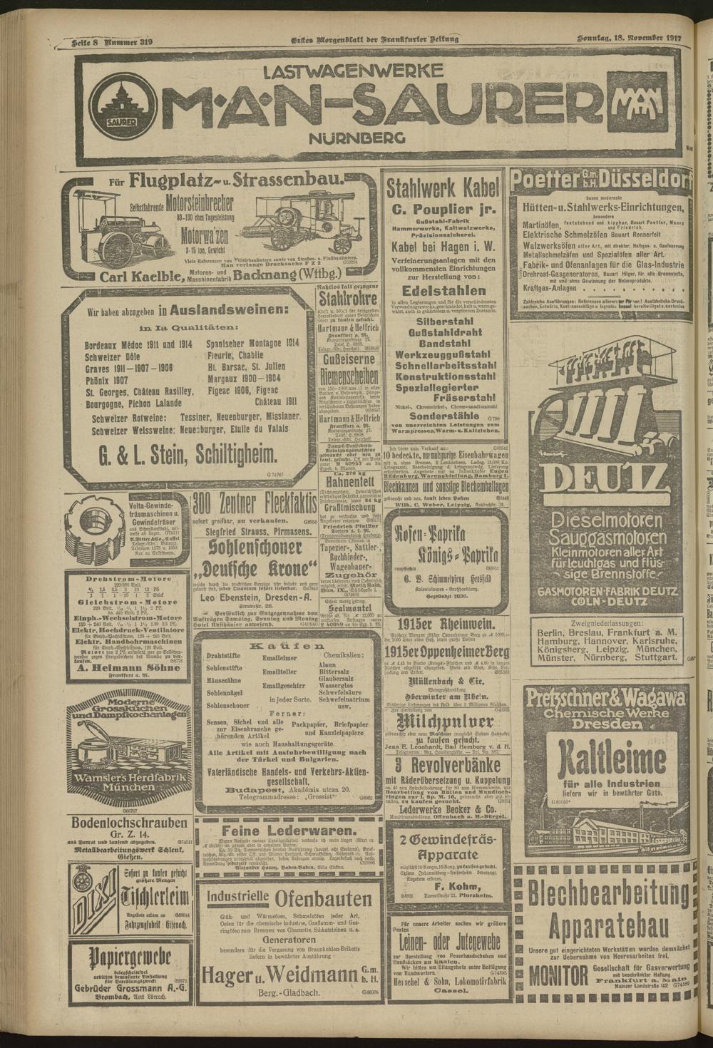 18.11.1917 = Nr. 319. Erstes Morgenblatt