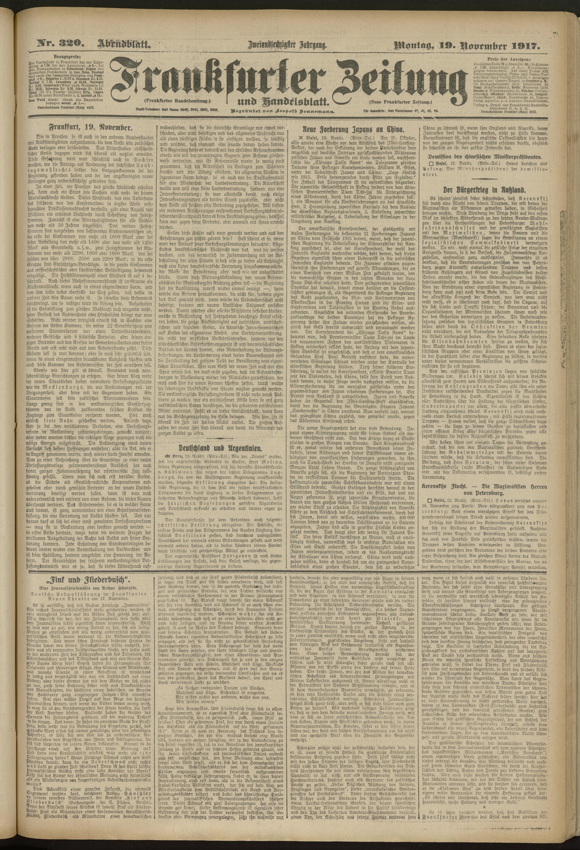 19.11.1917 = Nr. 320. Abendblatt