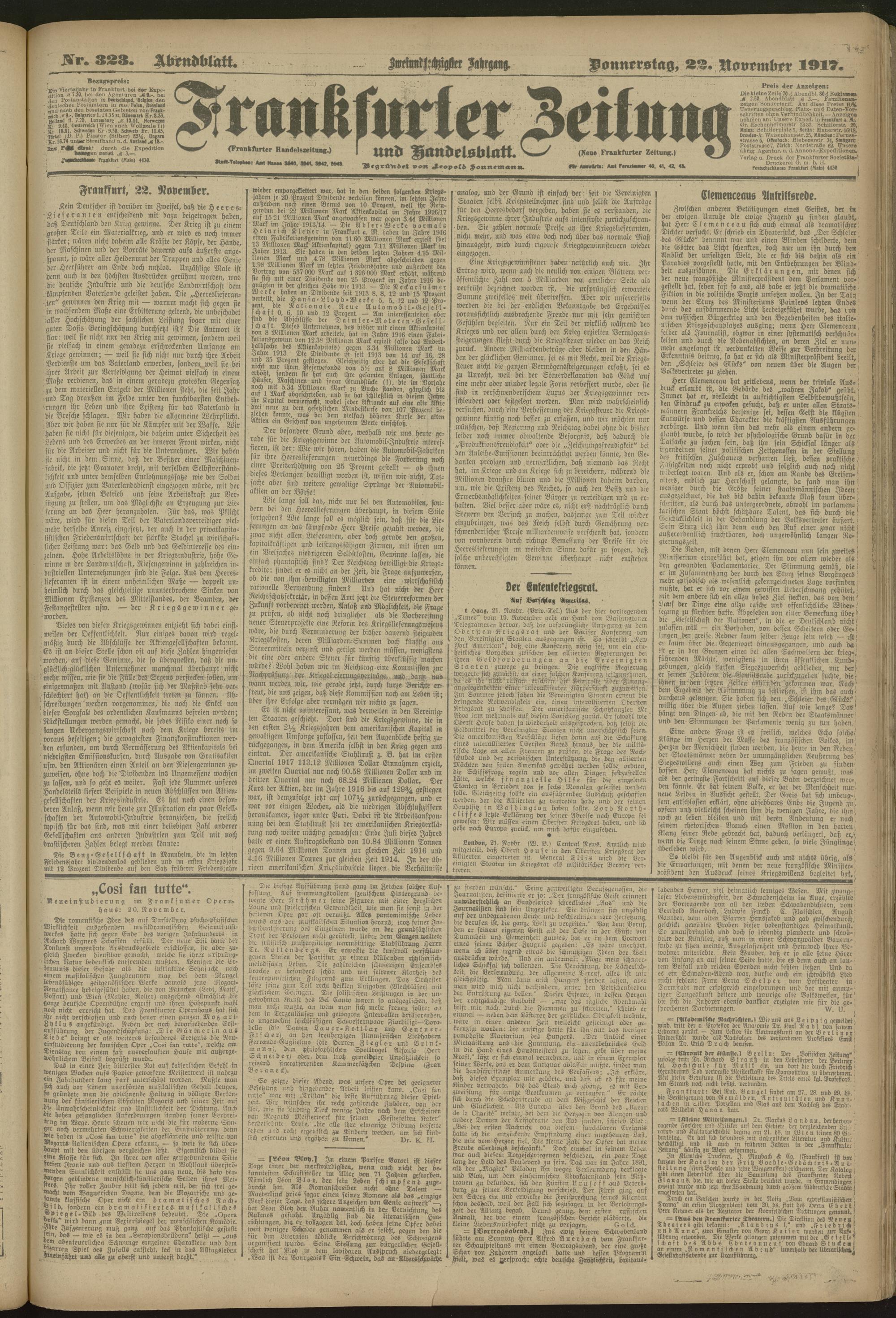 22.11.1917 = Nr. 323. Abendblatt