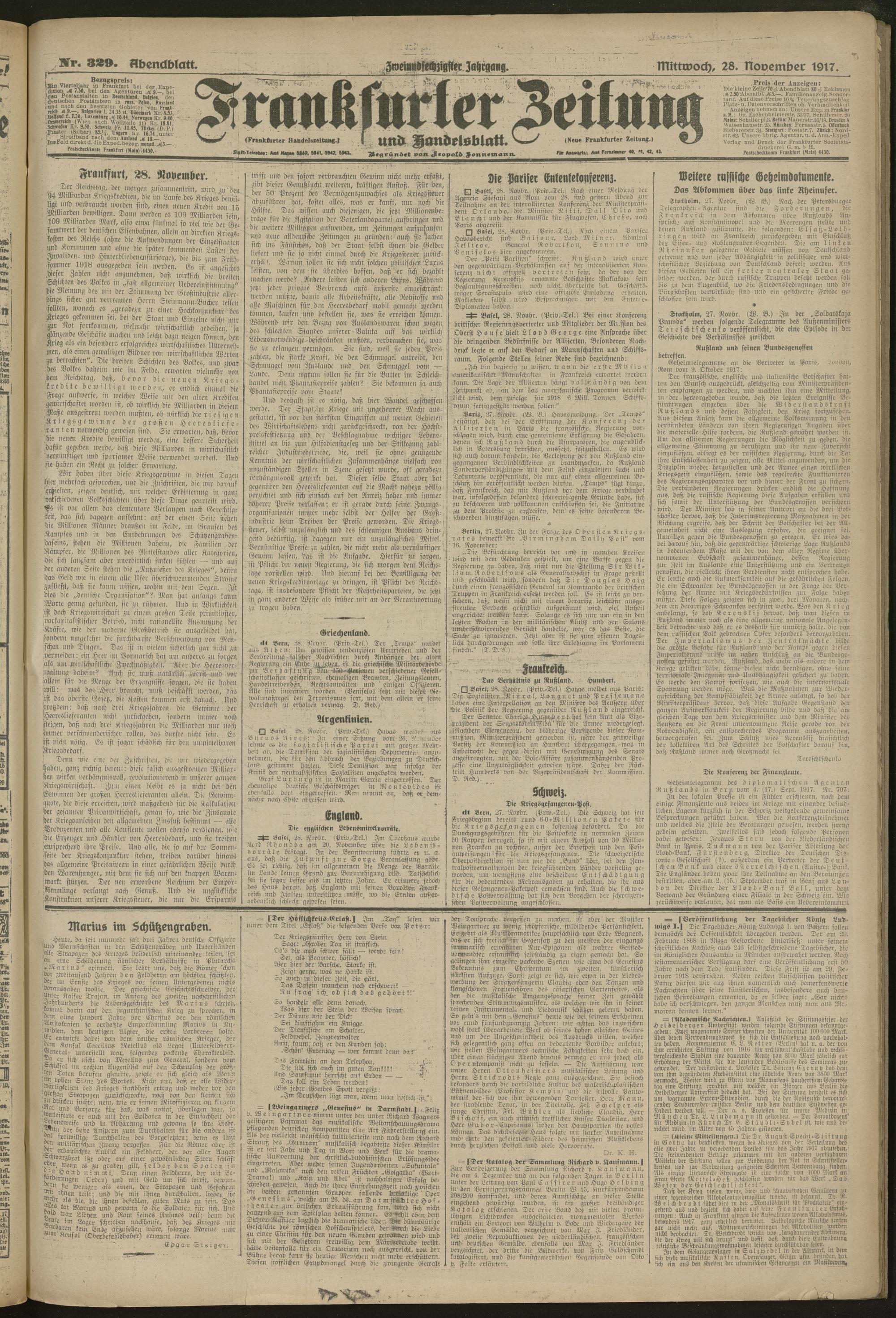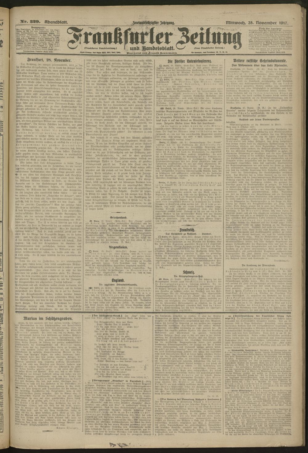 28.11.1917 = Nr. 329. Abendblatt