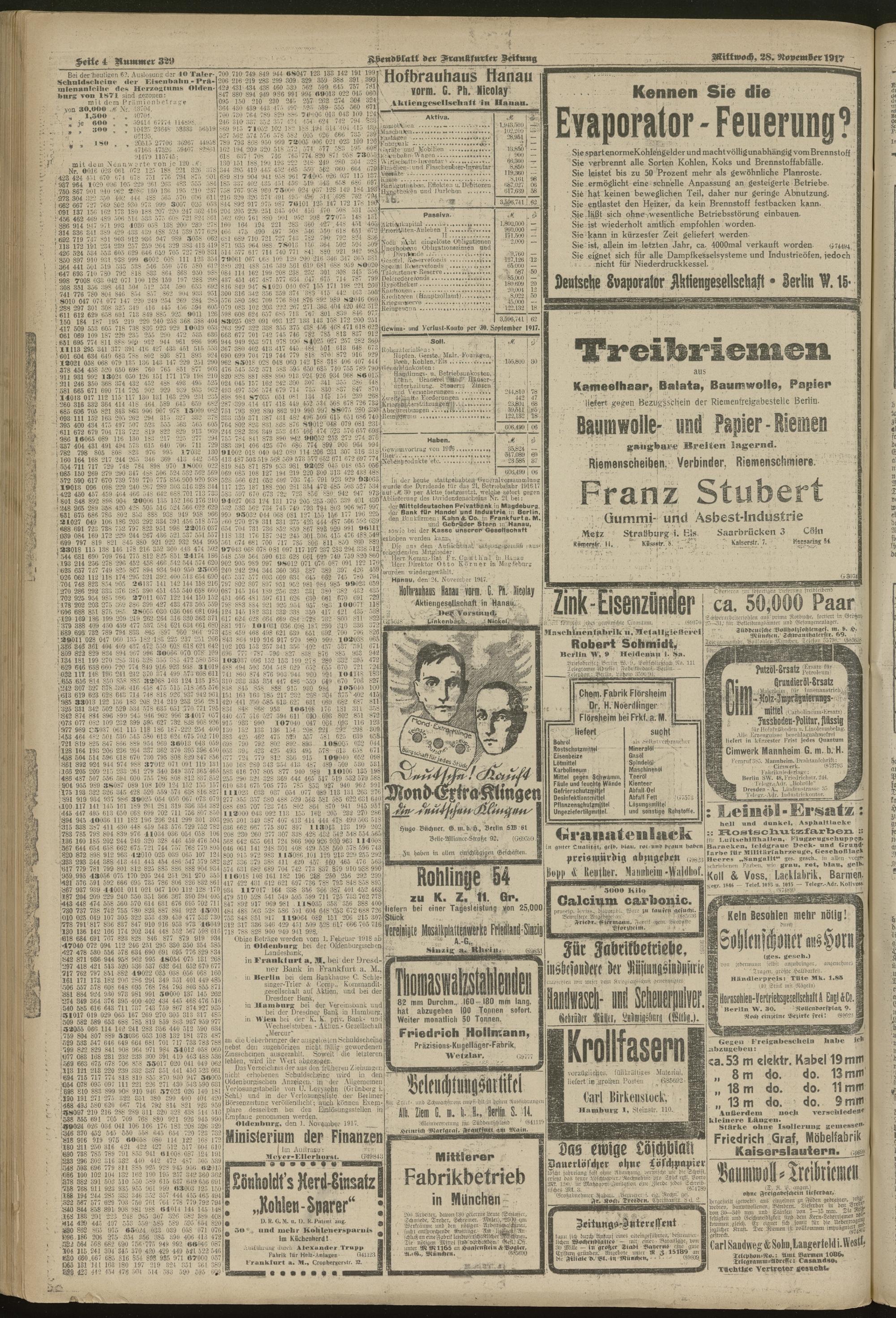 28.11.1917 = Nr. 329. Abendblatt