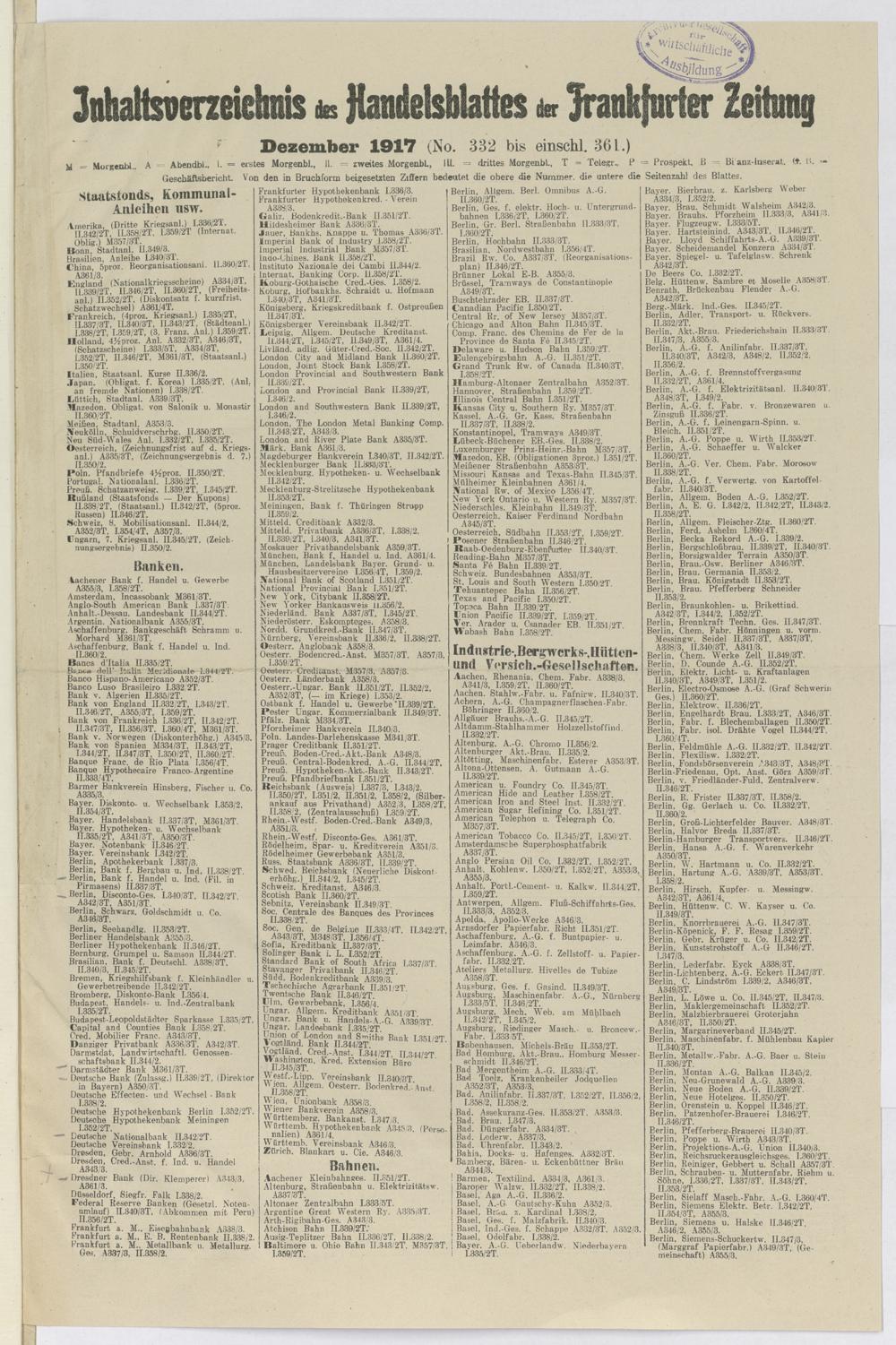 Frankfurter Zeitung und Handelsblatt. 18...