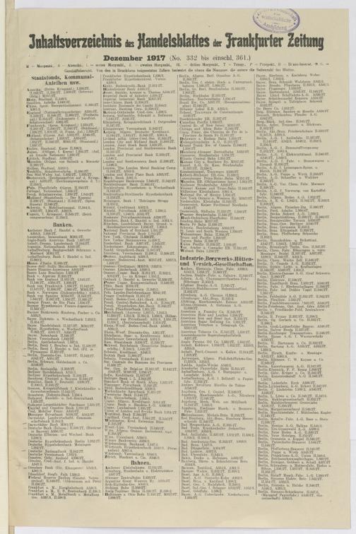 Inhaltsverzeichnis Dezember 1917