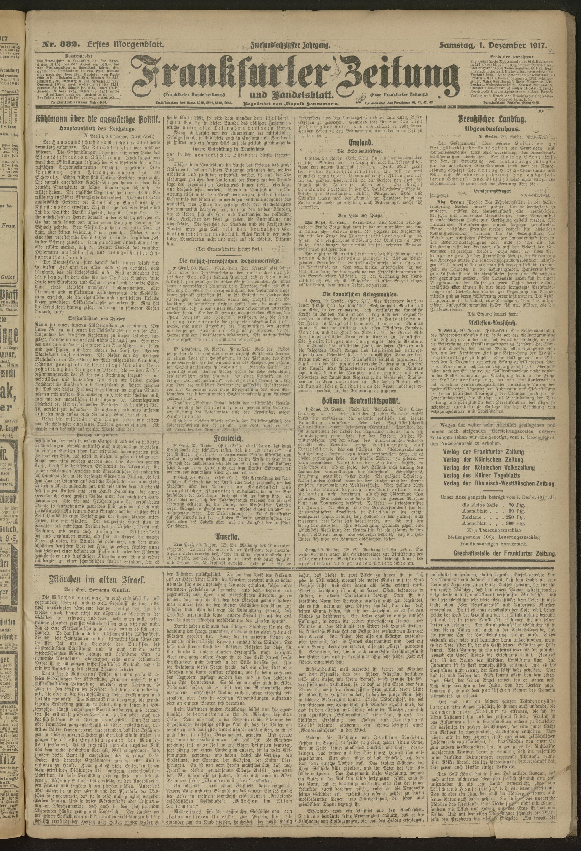 01.12.1917 = Nr. 332. Erstes Morgenblatt