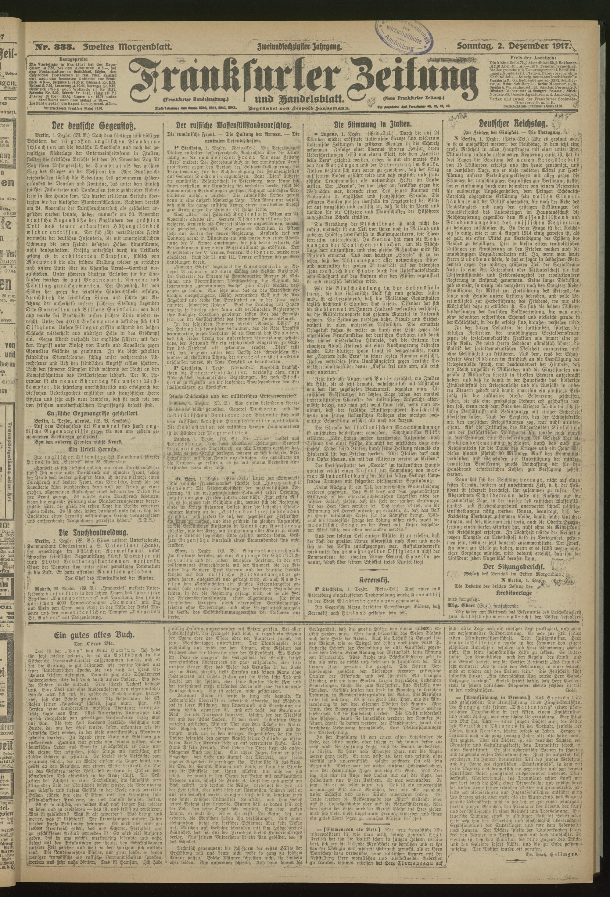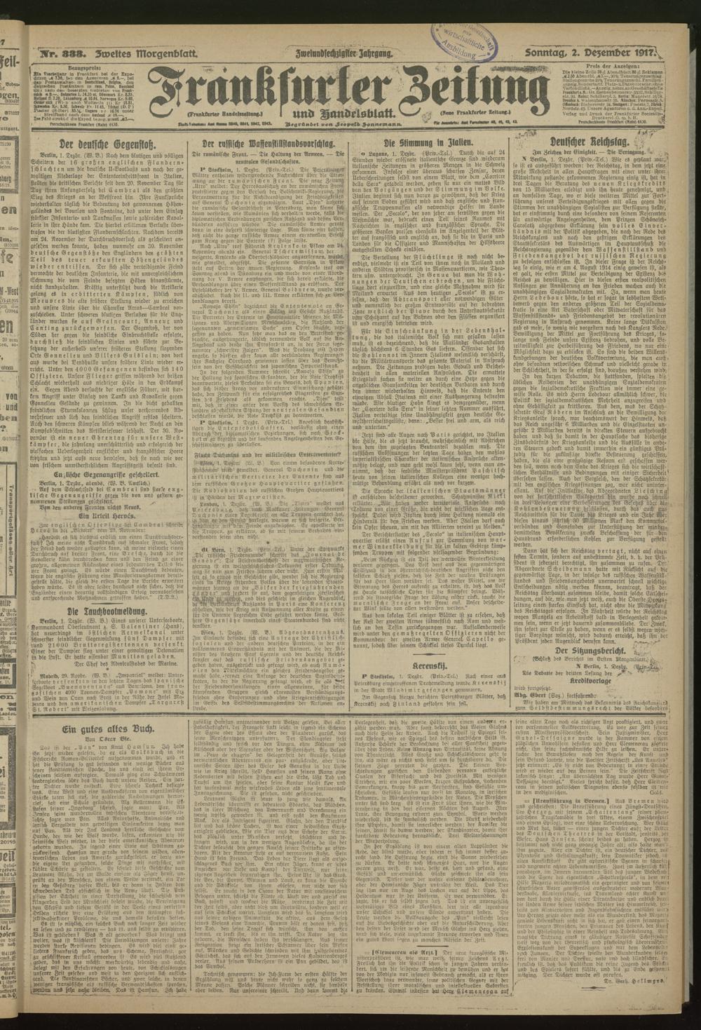02.12.1917 = Nr. 333. Zweites Morgenblatt