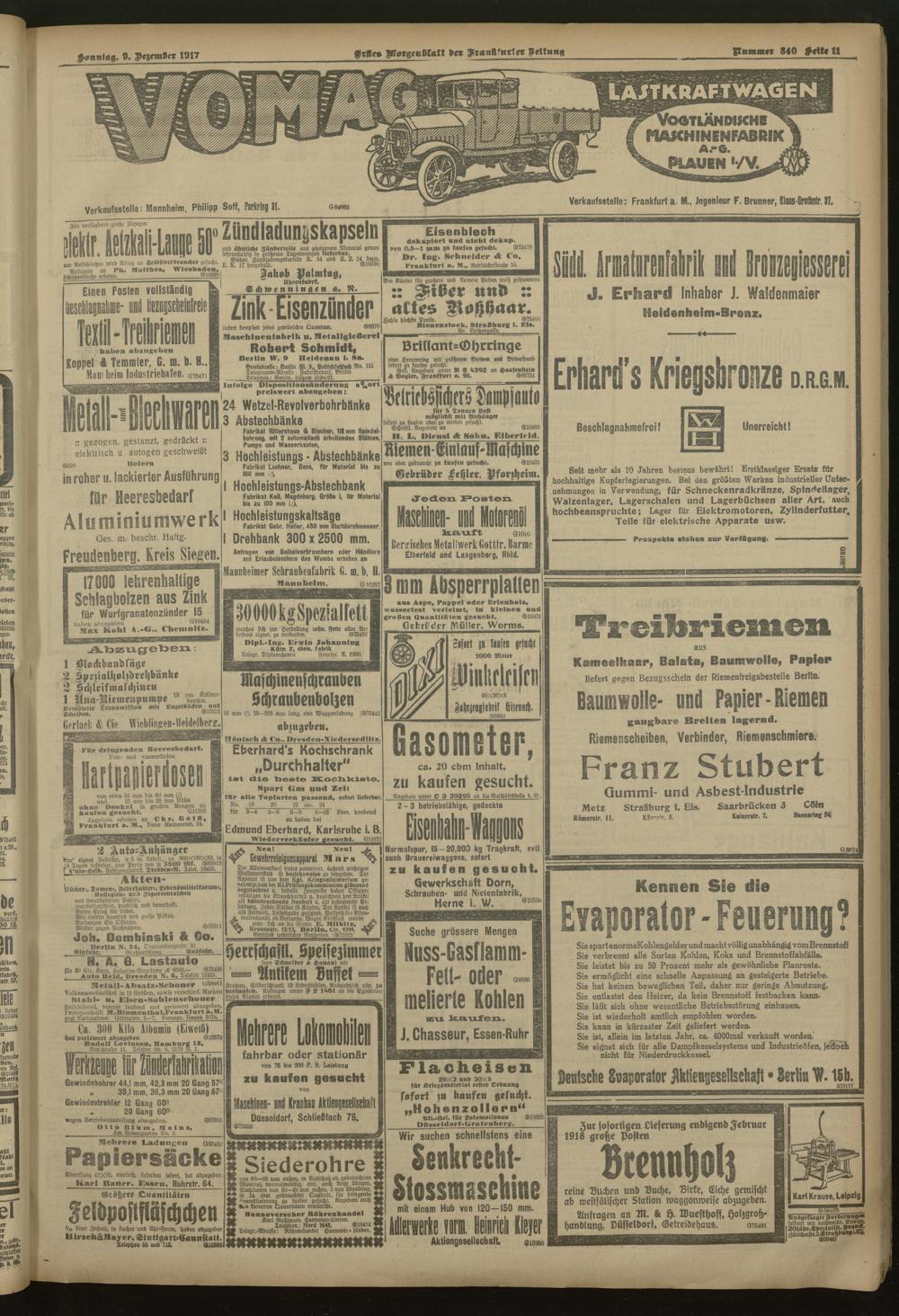 09.12.1917 = Nr. 340. Erstes Morgenblatt