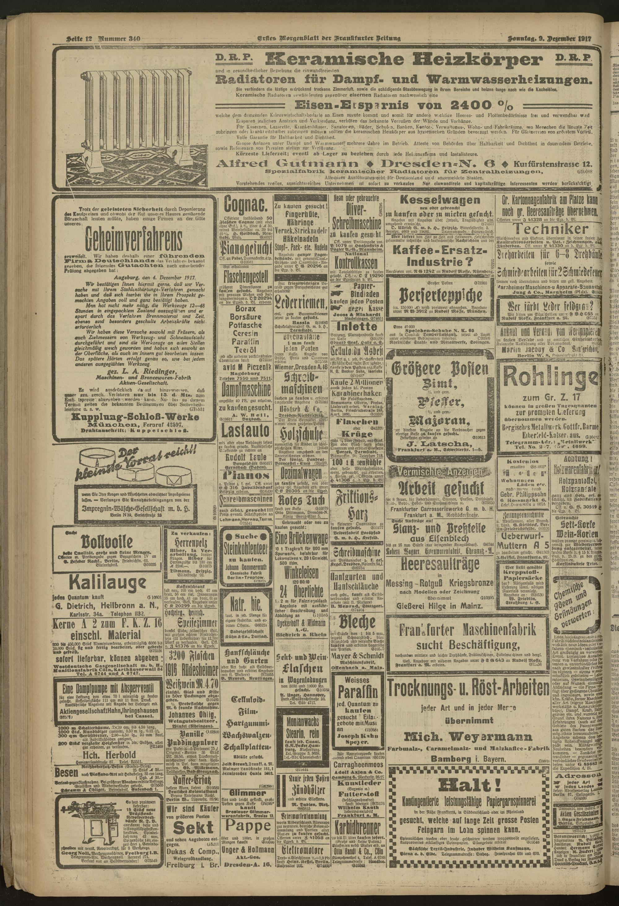 09.12.1917 = Nr. 340. Erstes Morgenblatt