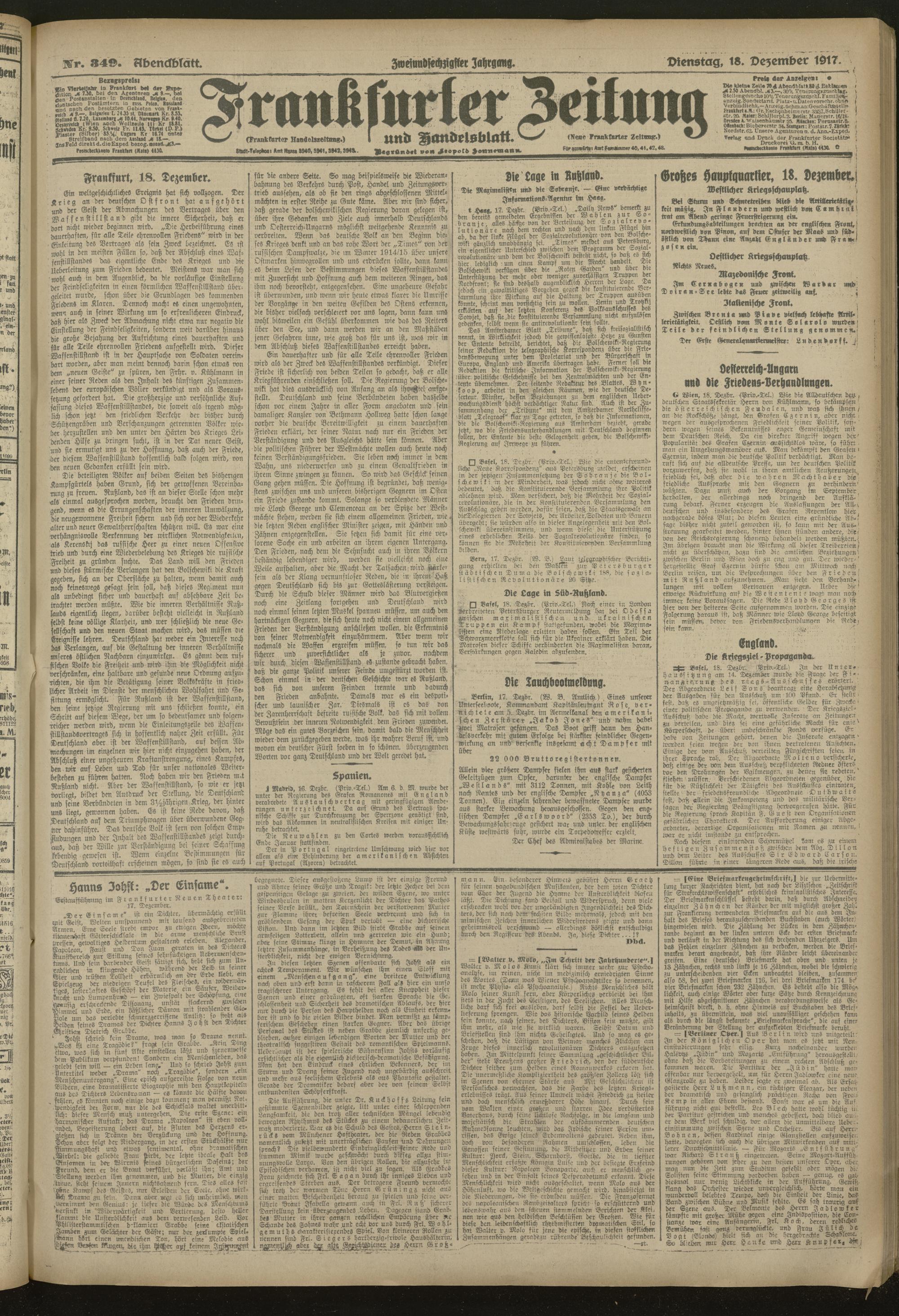 18.12.1917 = Nr. 349. Abendblatt