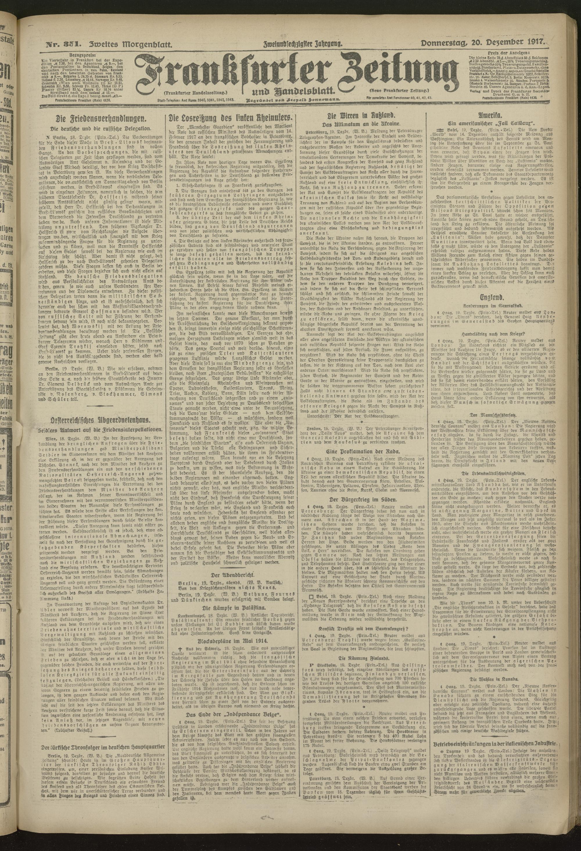 20.12.1917 = Nr. 351. Zweites Morgenblatt