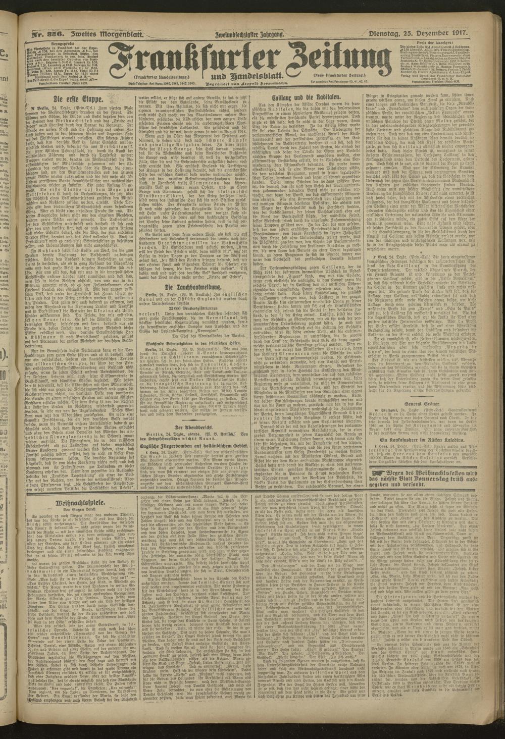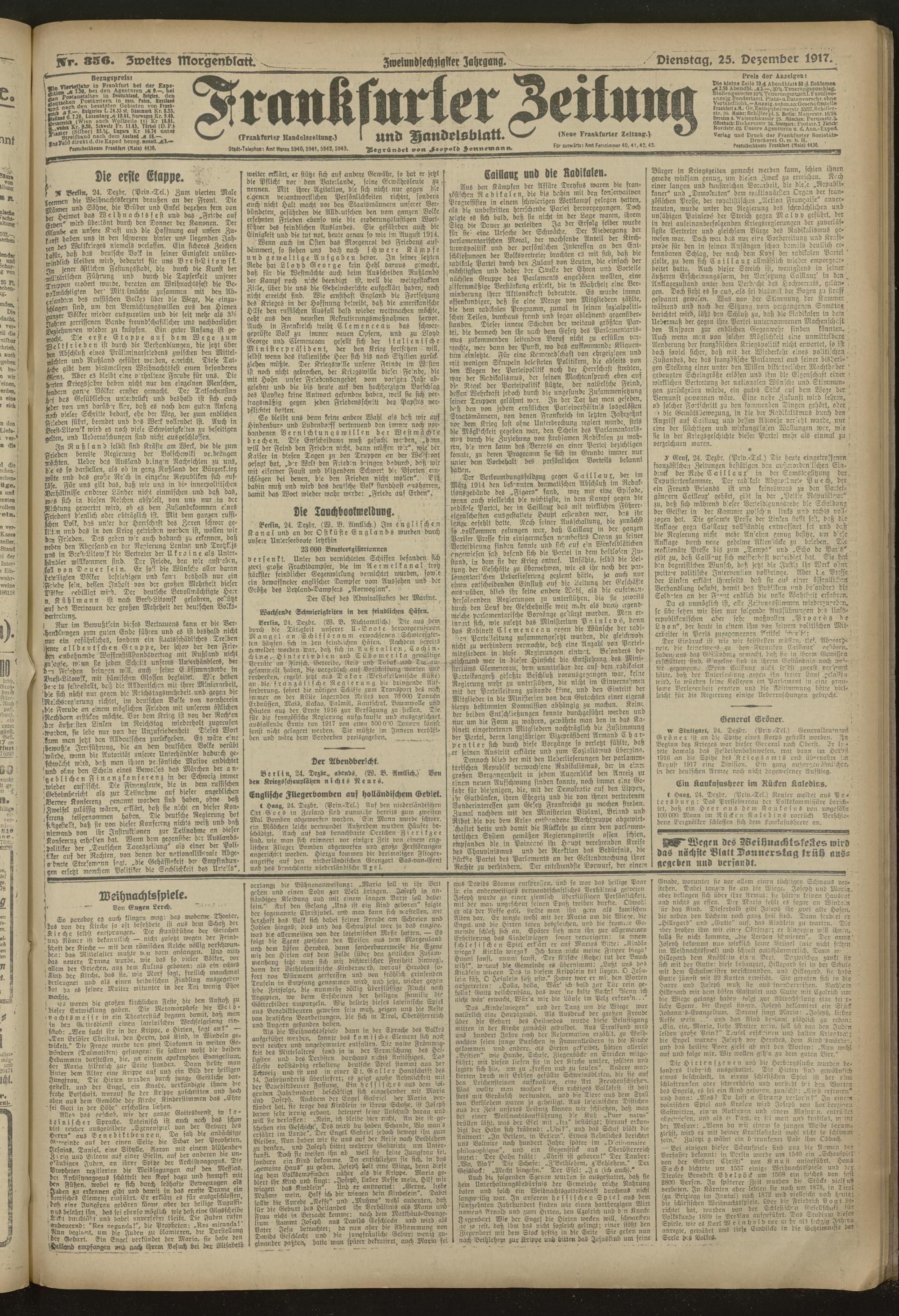 25.12.1917 = Nr. 356. Zweites Morgenblatt