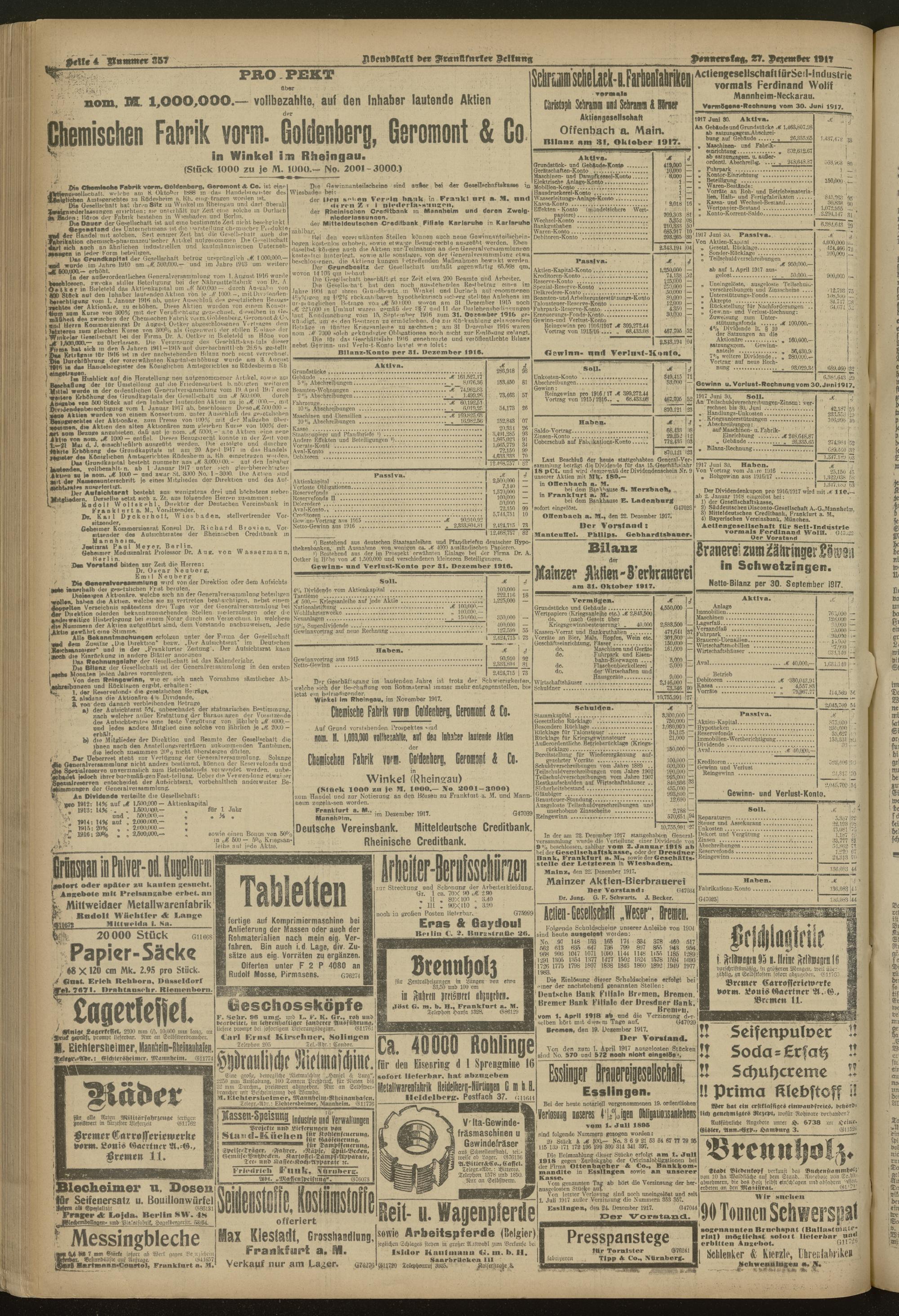 27.12.1917 = Nr. 357. Abendblatt
