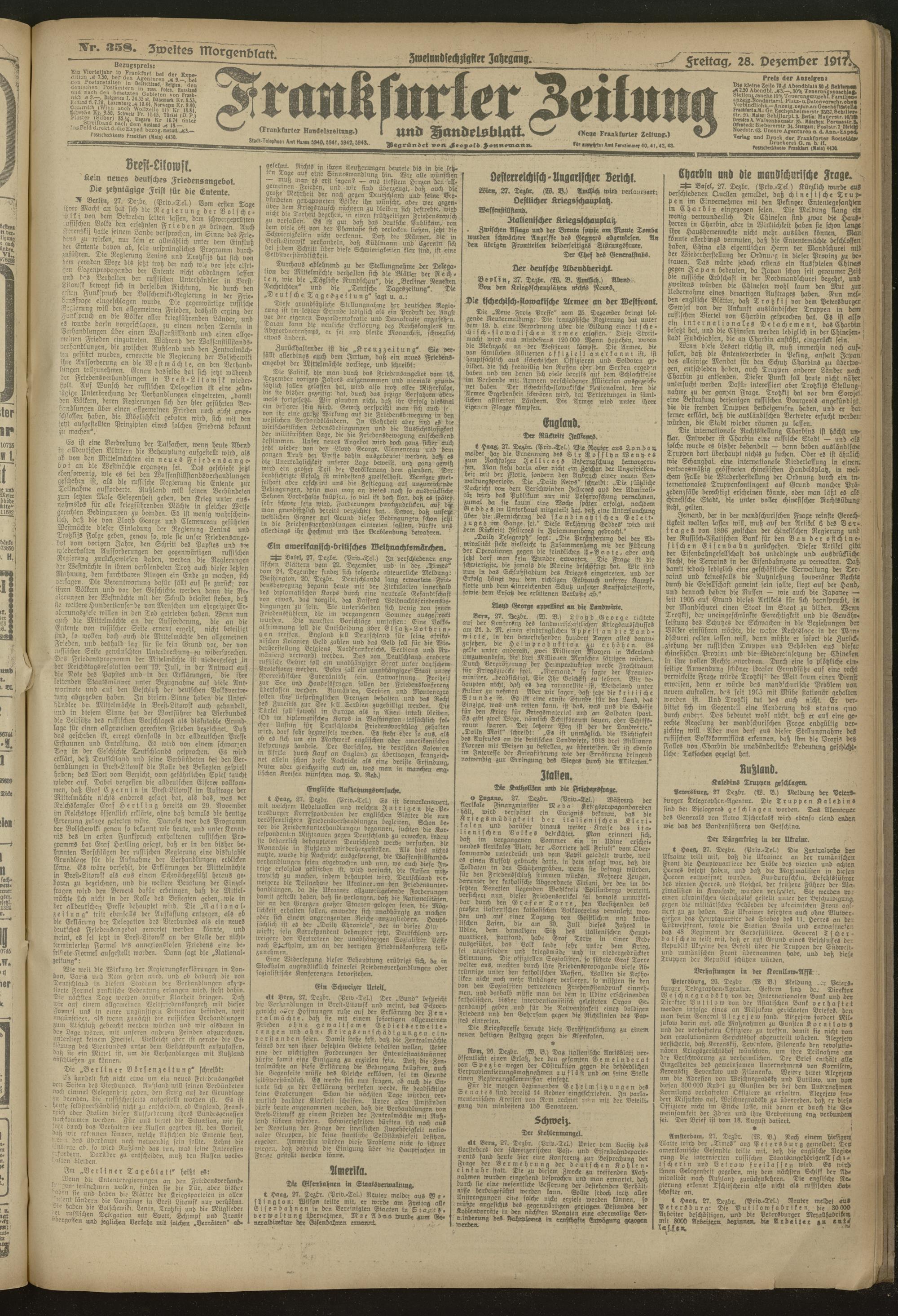 28.12.1917 = Nr. 358. Zweites Morgenblatt