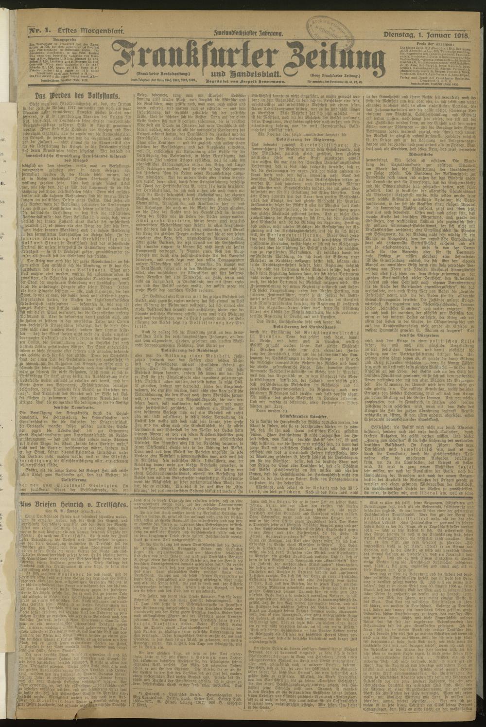 01.01.1918 = Nr. 1 Erstes Morgenblatt