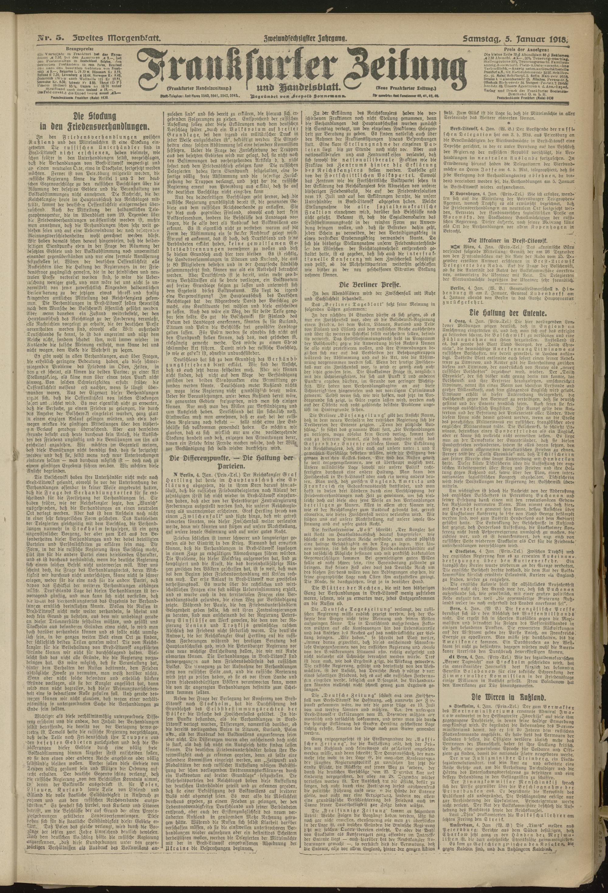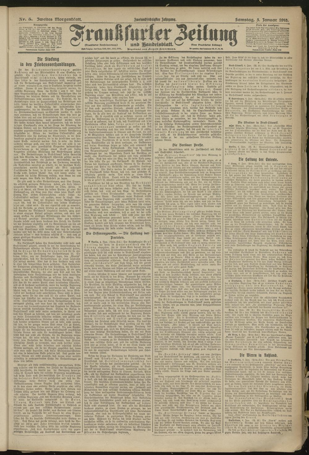 05.01.1918 = Nr. 5. Zweites Morgenblatt