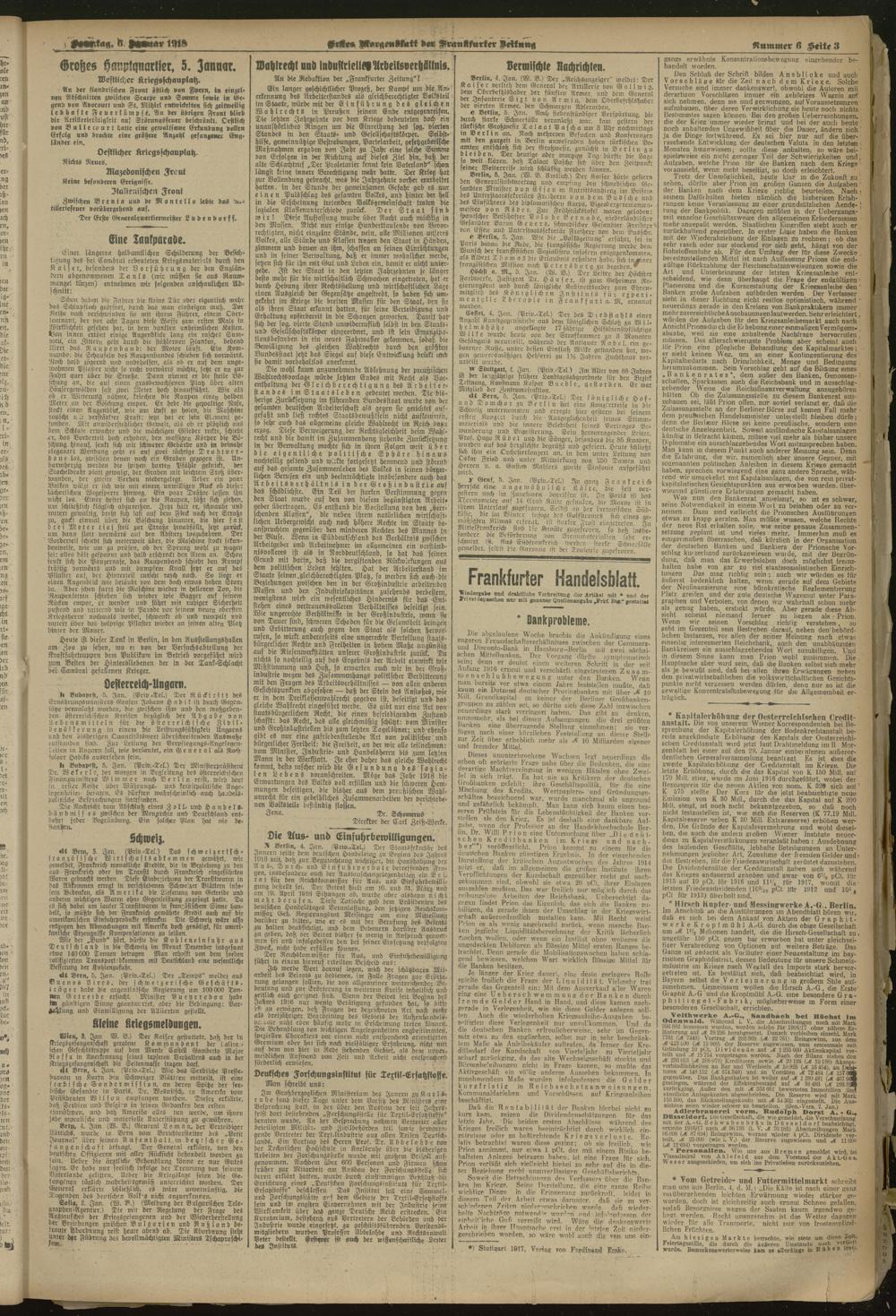 06.01.1918 = Nr. 6. Erstes Morgenblatt