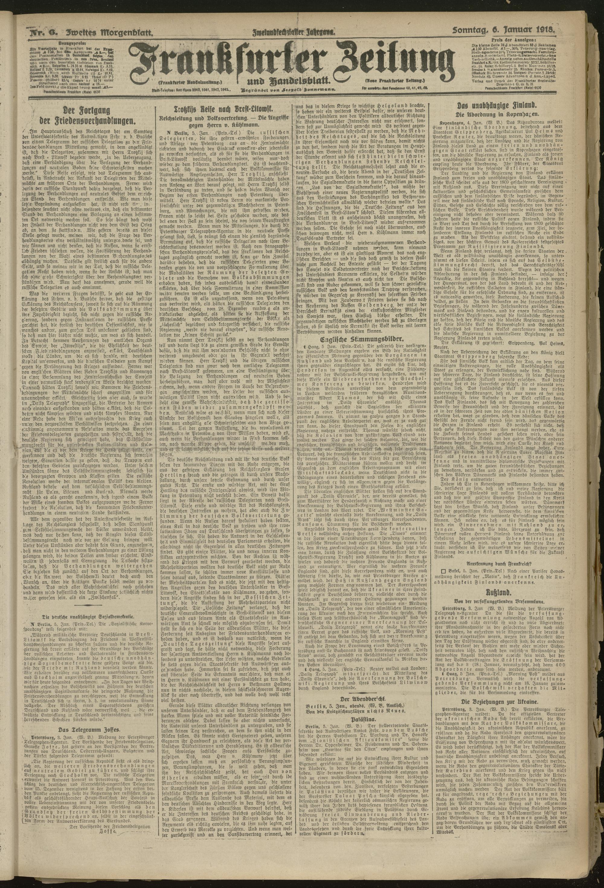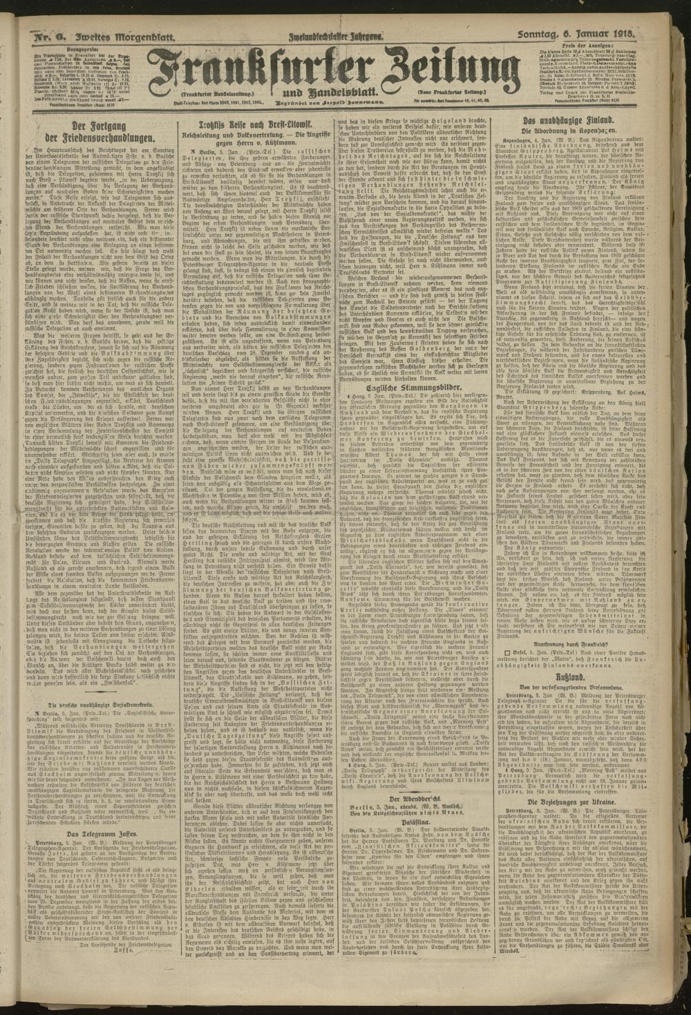 06.01.1918 = Nr. 6. Zweites Morgenblatt