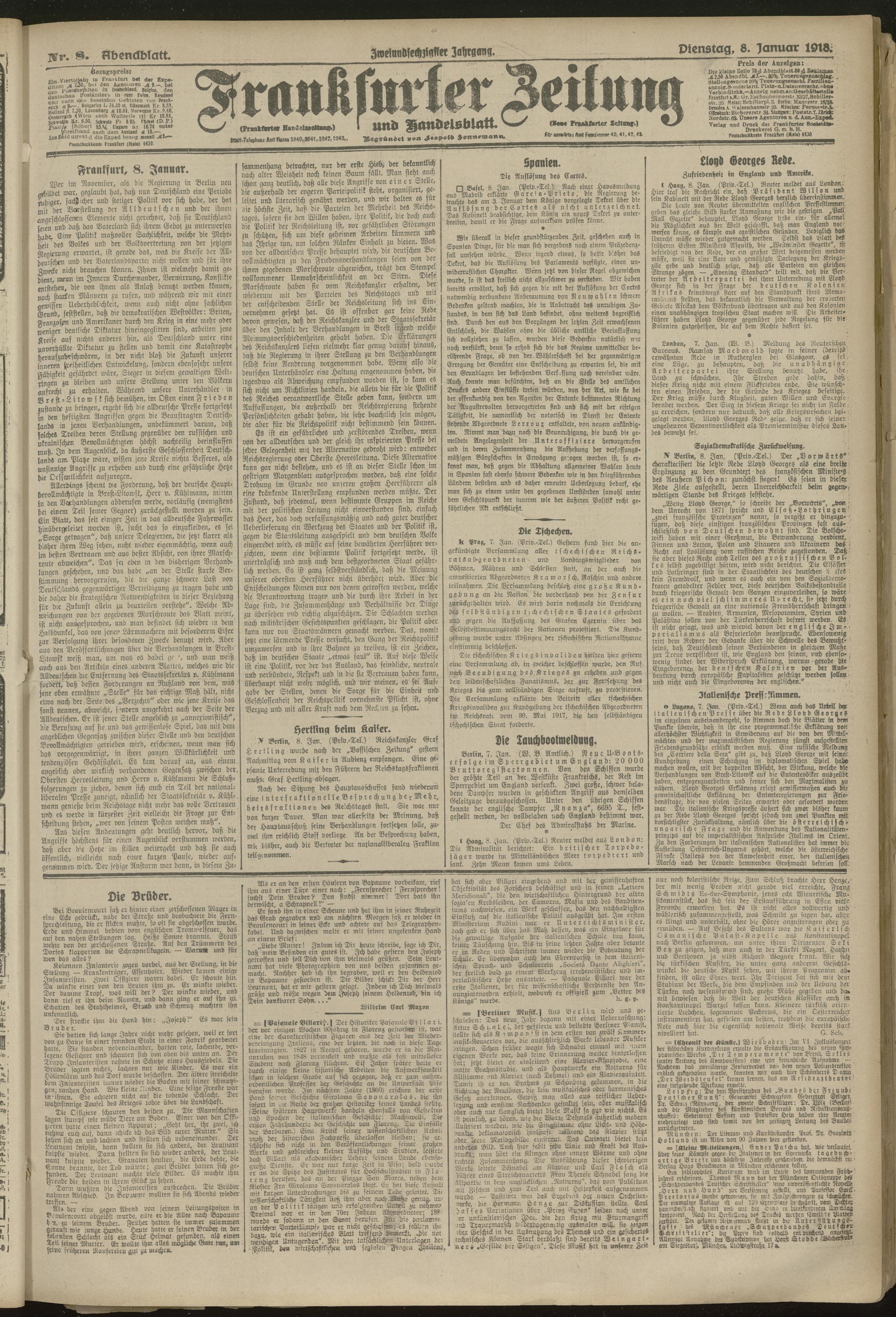 08.01.1918 = Nr. 8. Abendblatt