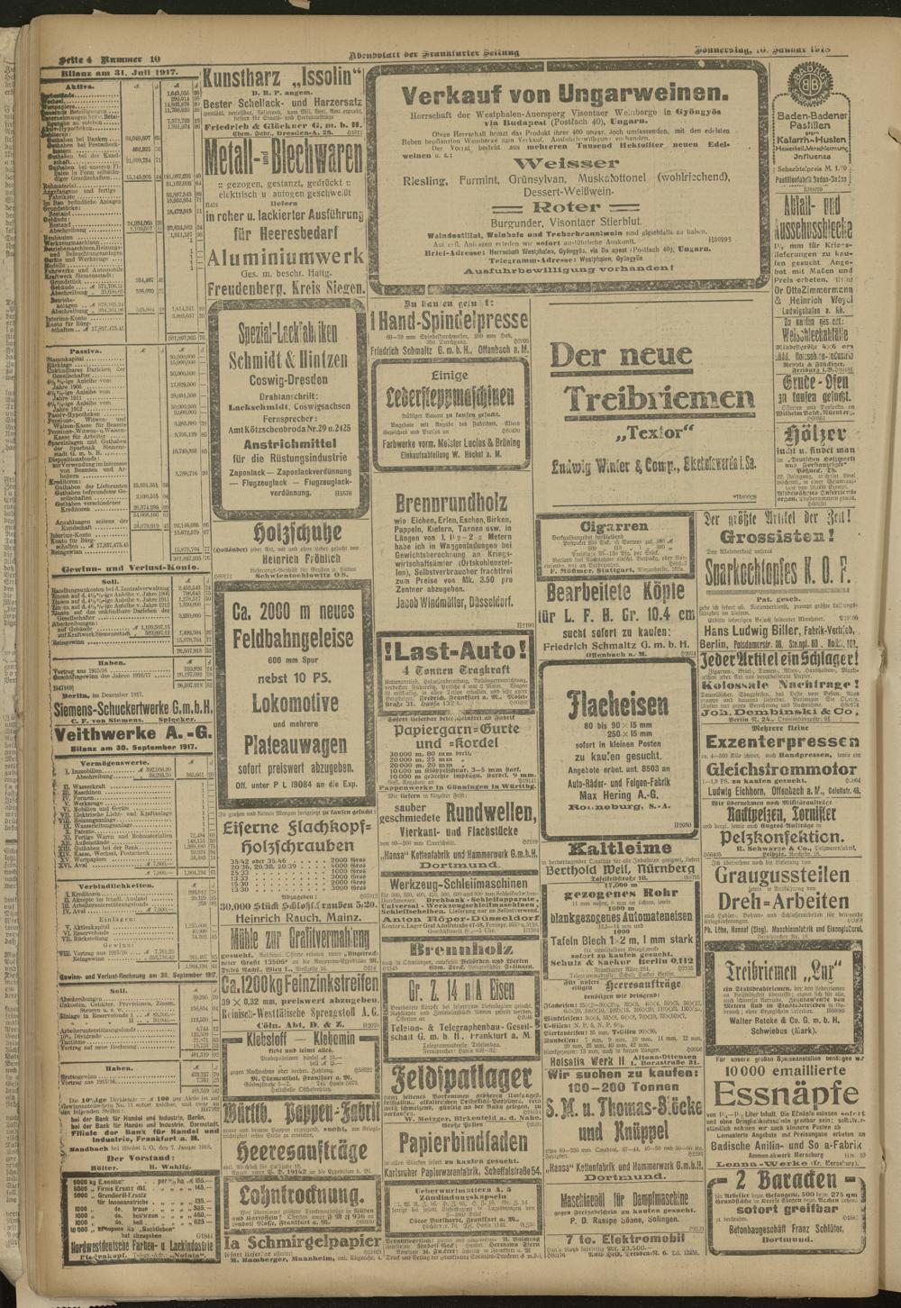 10.01.1918 = Nr. 10. Abendblatt