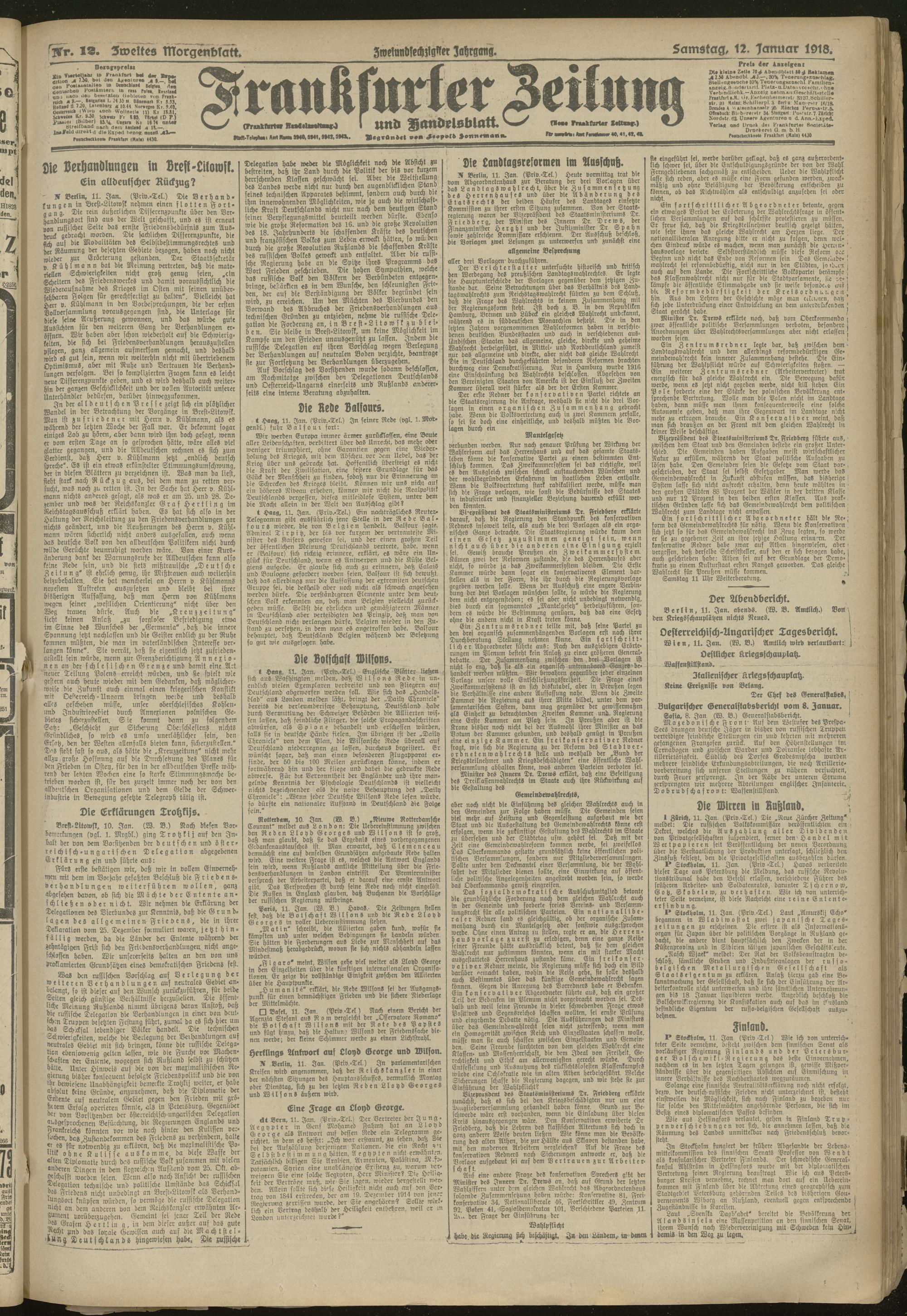 12.01.1918 = Nr. 12. Zweites Morgenblatt