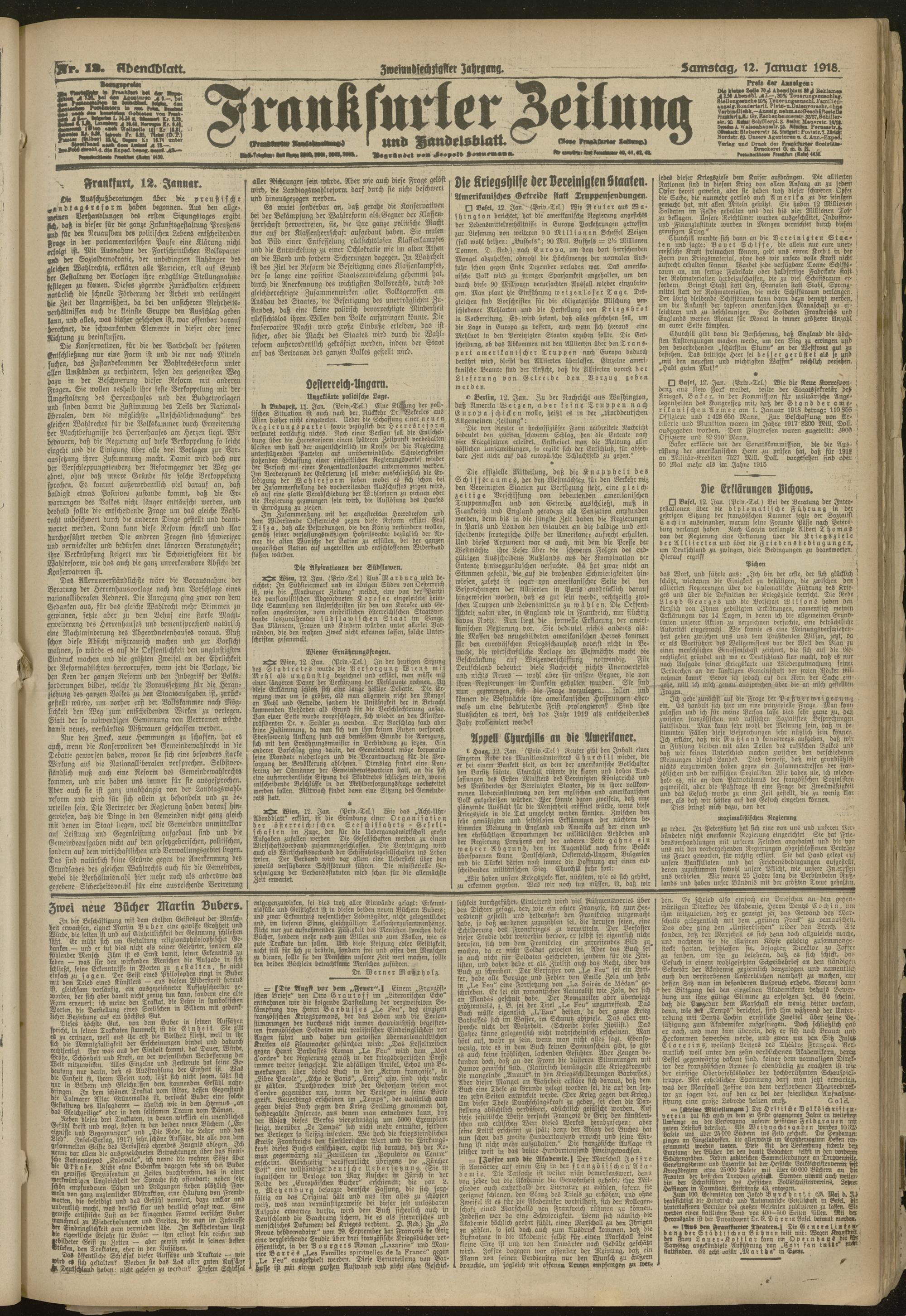 12.01.1918 = Nr. 12. Abendblatt