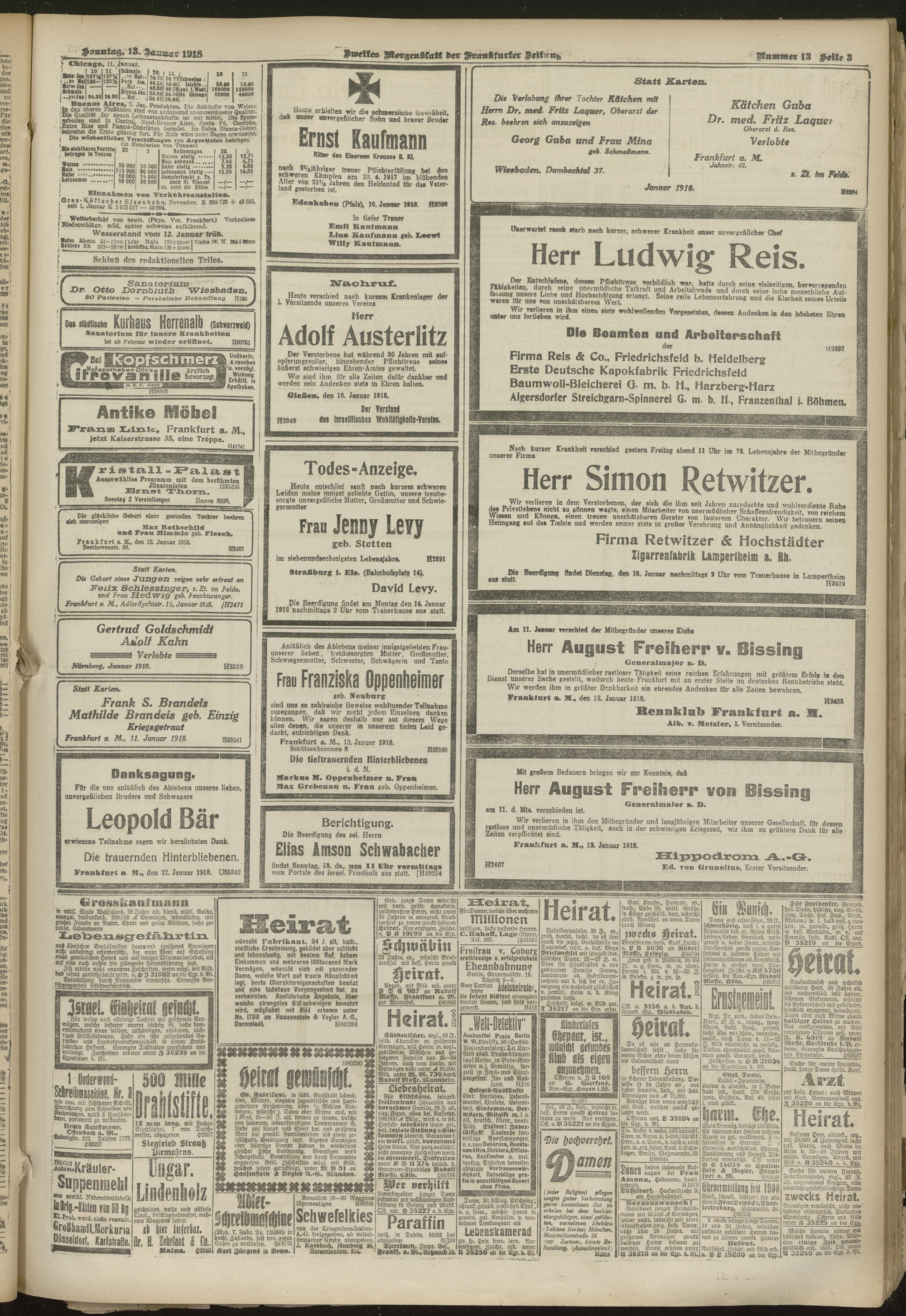 13.01.1918 = Nr. 13. Zweites Morgenblatt