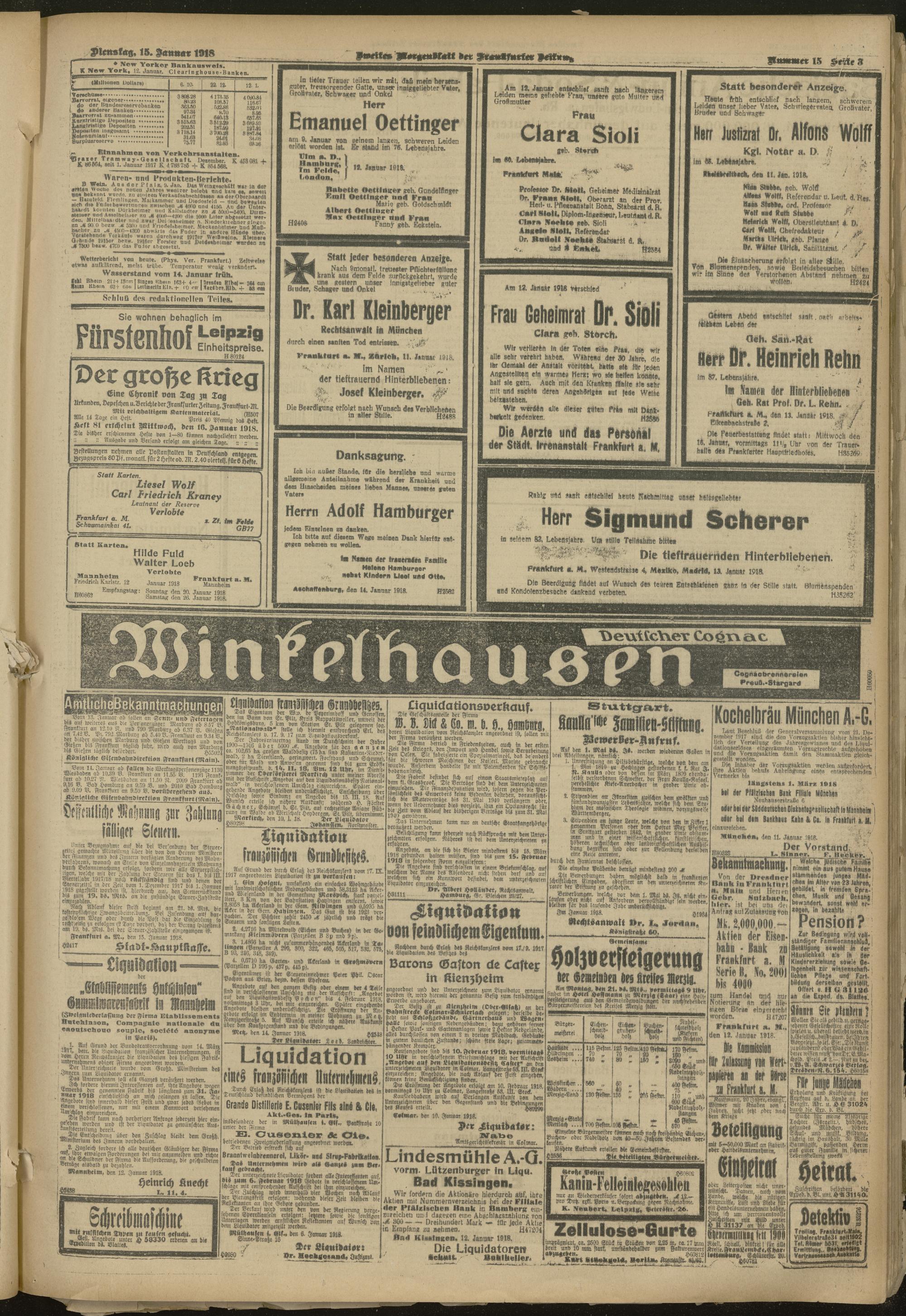 15.01.1918 = Nr. 15. Zweites Morgenblatt