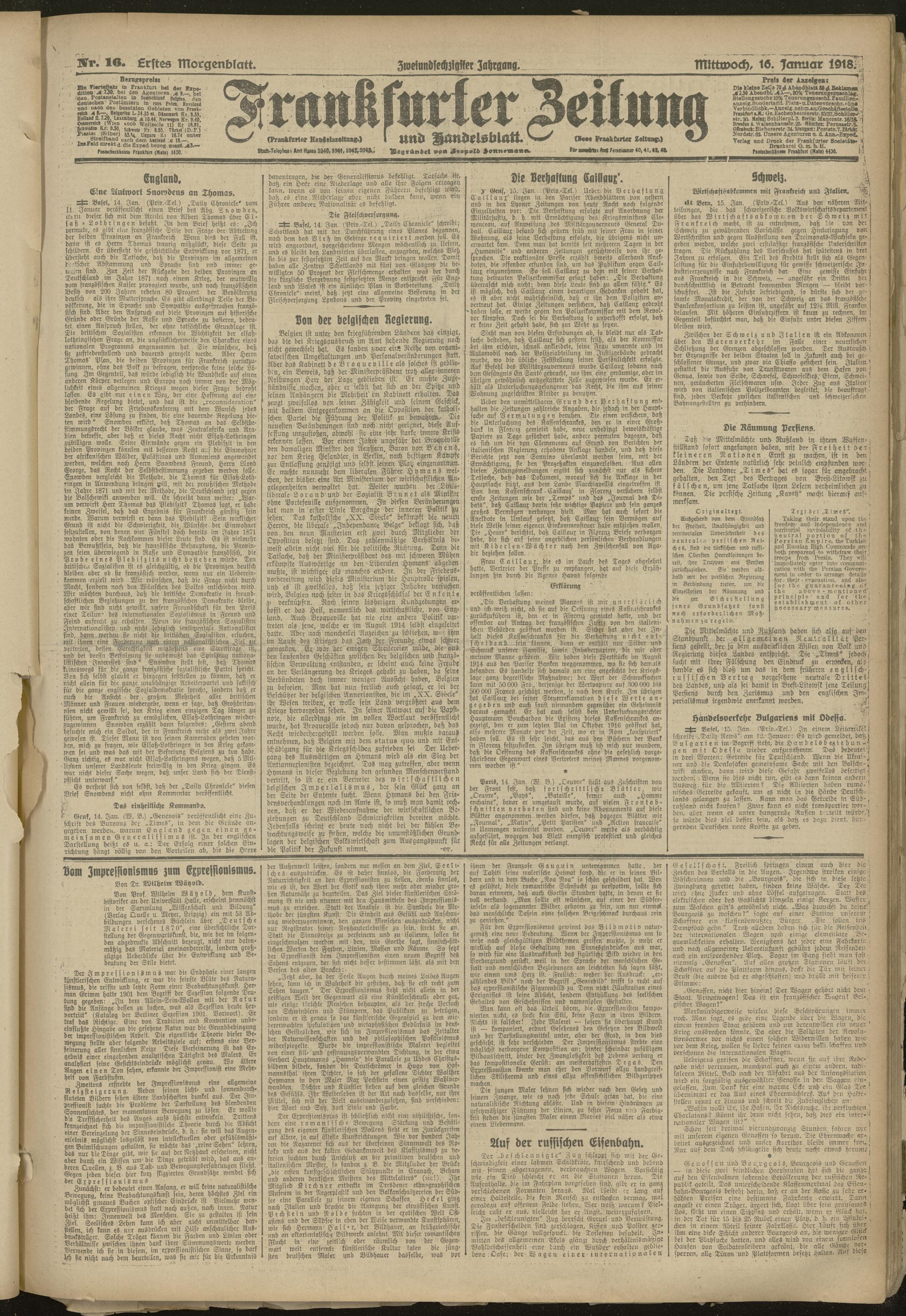 16.01.1918 = Nr. 16. Erstes Morgenblatt