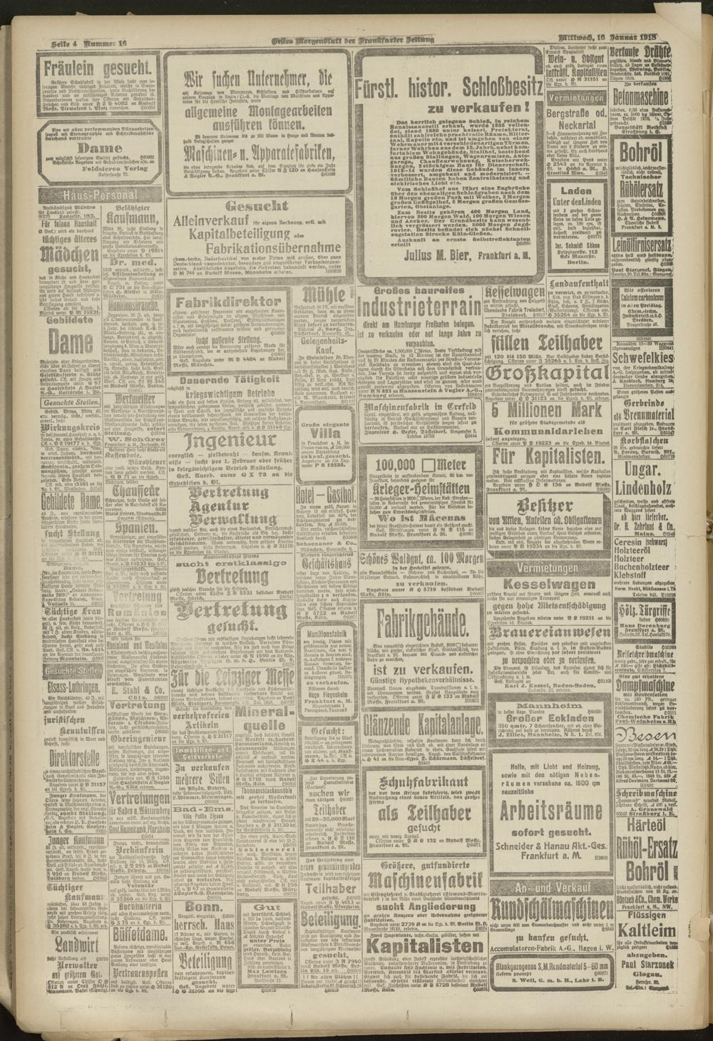 16.01.1918 = Nr. 16. Erstes Morgenblatt