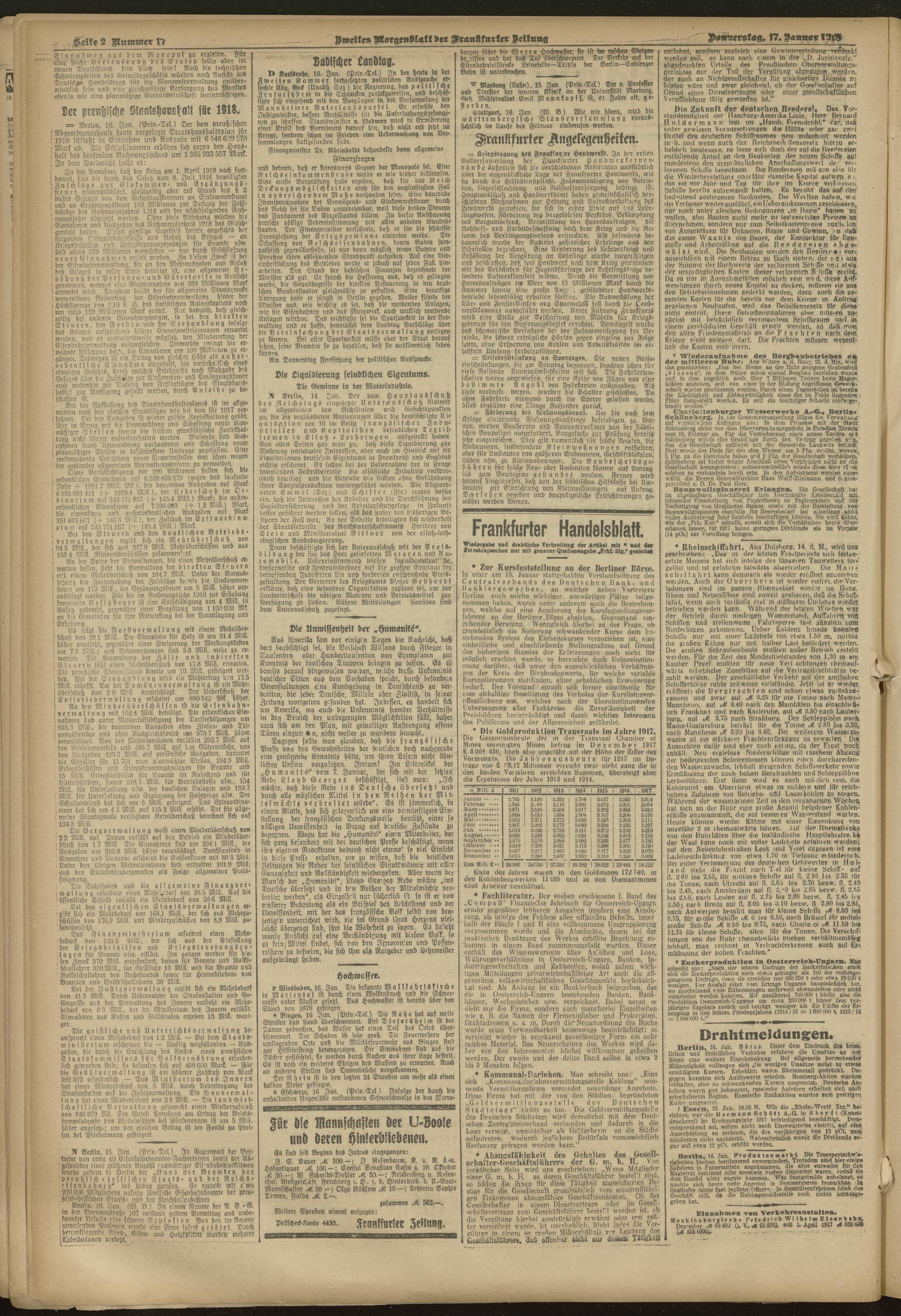 17.01.1918 = Nr. 17. Zweites Morgenblatt