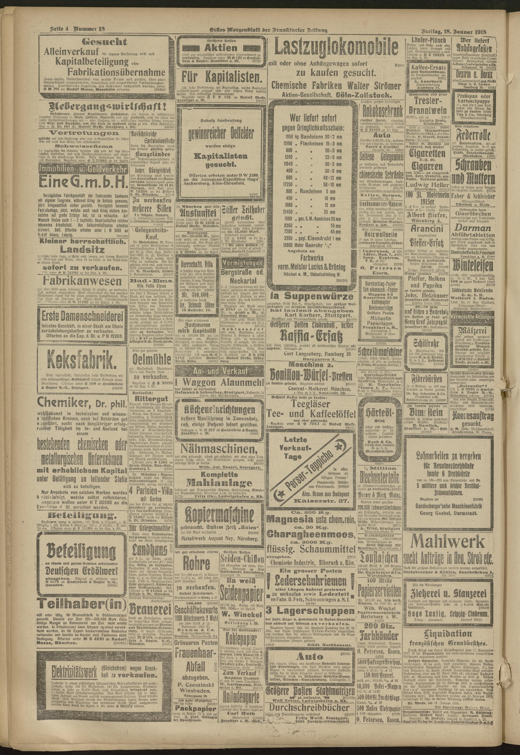 18.01.1918 = Nr. 18. Erstes Morgenblatt